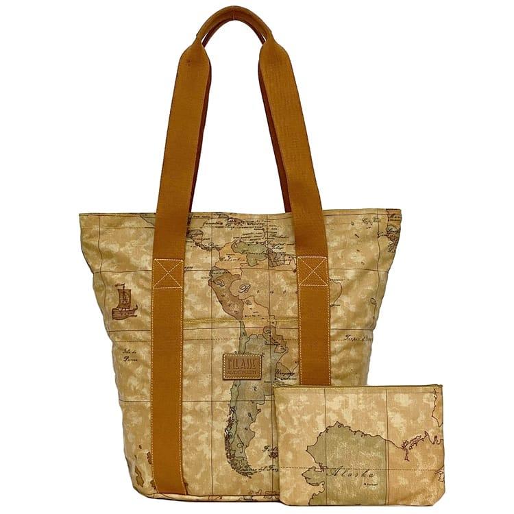 プリマクラッセ トートバッグ ec-22438 ベージュ 美品 ポーチ付き PVC 中古 PRIMA CLASSE 世界 地図 肩掛け 大容量 軽い ロゴ ヴィンテージ 定番 人気 トート お洒落 カジュアル 大きい 鞄 バッグ 総柄 地図柄 レディース 高級感 上品 ブランド 本物 鑑定済み
