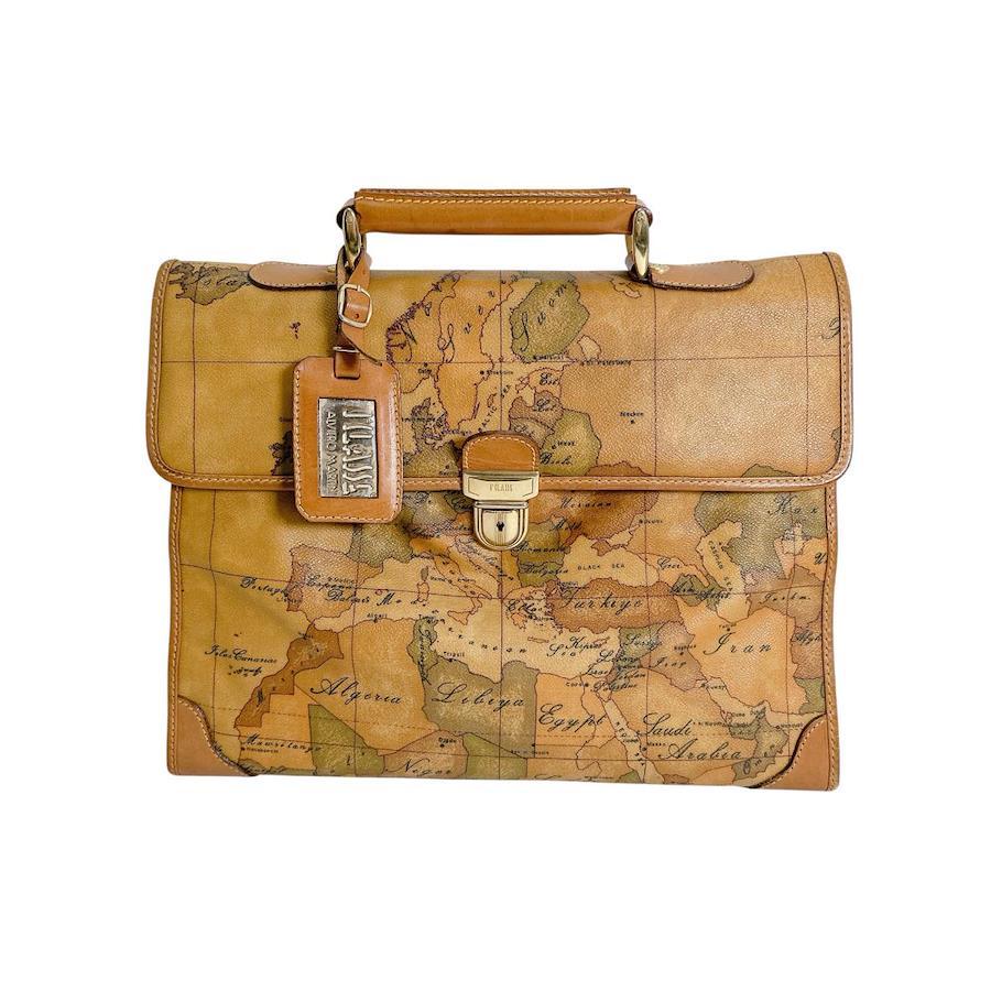 | ハンドバッグPRIMA CLASSE ブリーフケース地図柄 ビジネスバッグユニセックス ブラウン |
