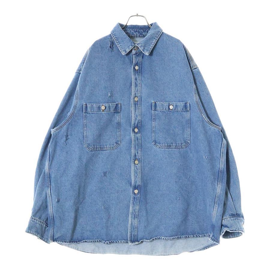 [モデル]22AW DESTROYED DENIM SHIRT ダメージ加工 デニムジャケット HM00D13