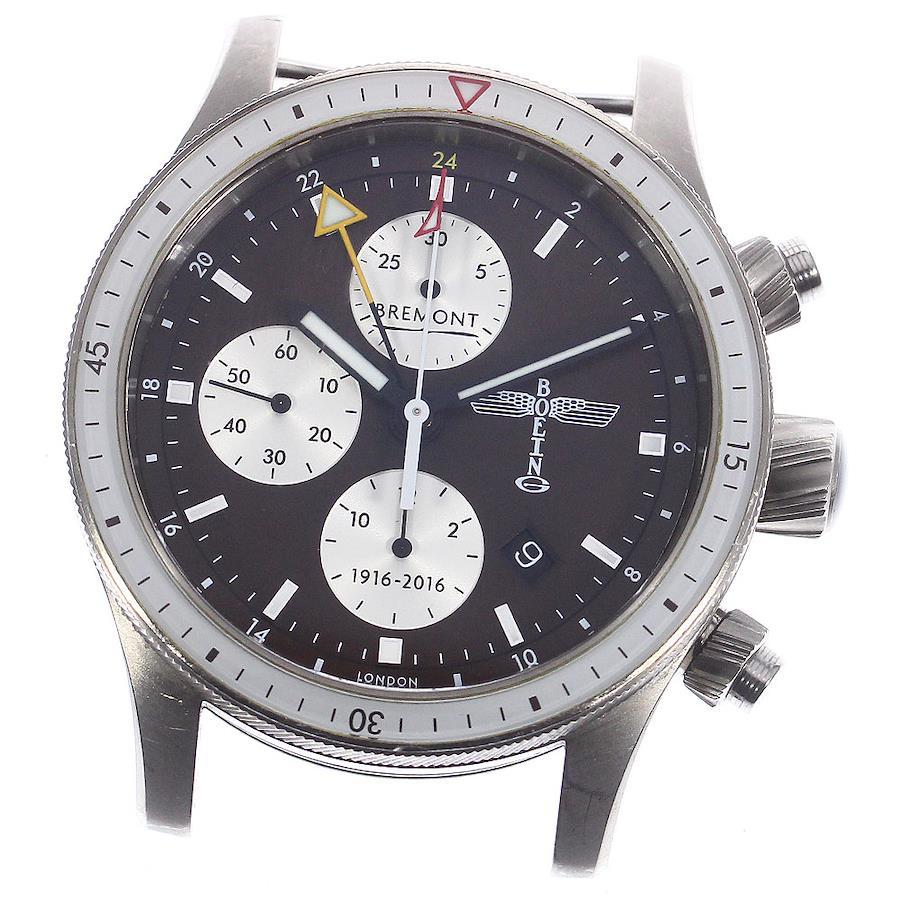 ■商品情報ブランド: ブレモン/BREMONTモデル名: ボーイング100対象: メンズ素材: チタン × 革文字盤色: ブラウンムーブメント:自動巻きRef.No: BB100シリアル:16*/300機能・特徴:デイト,クロノグラフ,スモールセコンド付属品:外箱,内箱,保証書(カード),取扱説明書,工具ケースサイズ(w):約 43mmラグ幅: 22mm日差: +1秒/日 ※参考値OH歴: 弊社では実施しておりません。保証書の情報: 2017/03/13