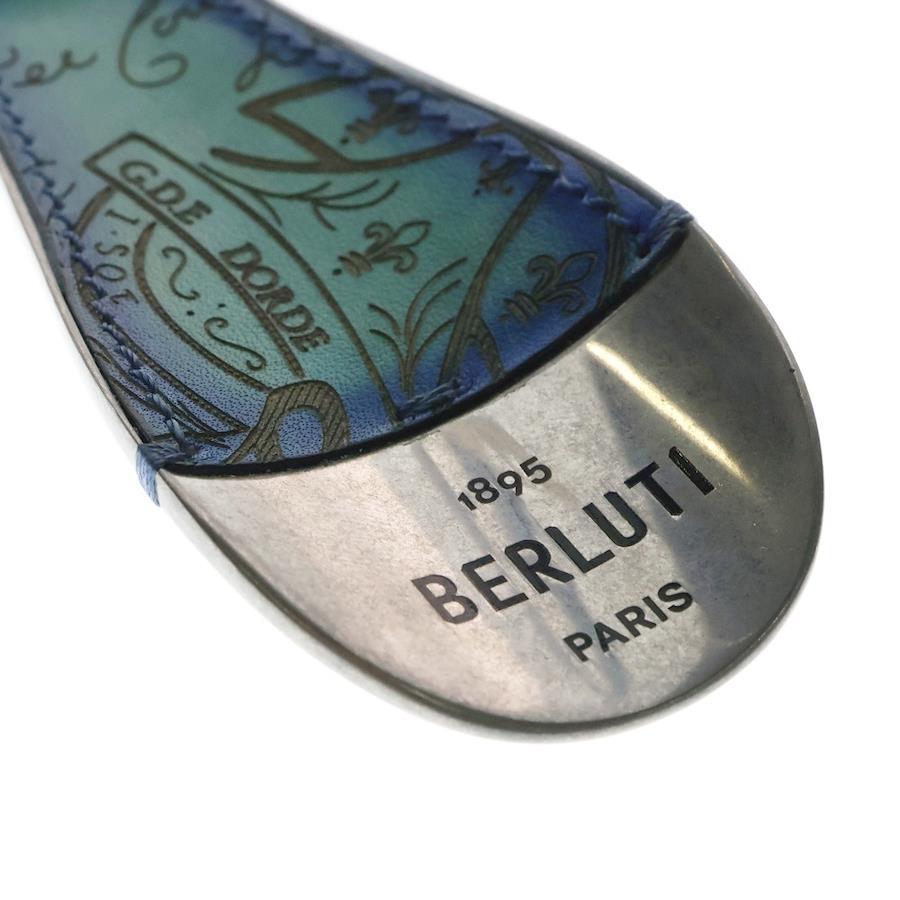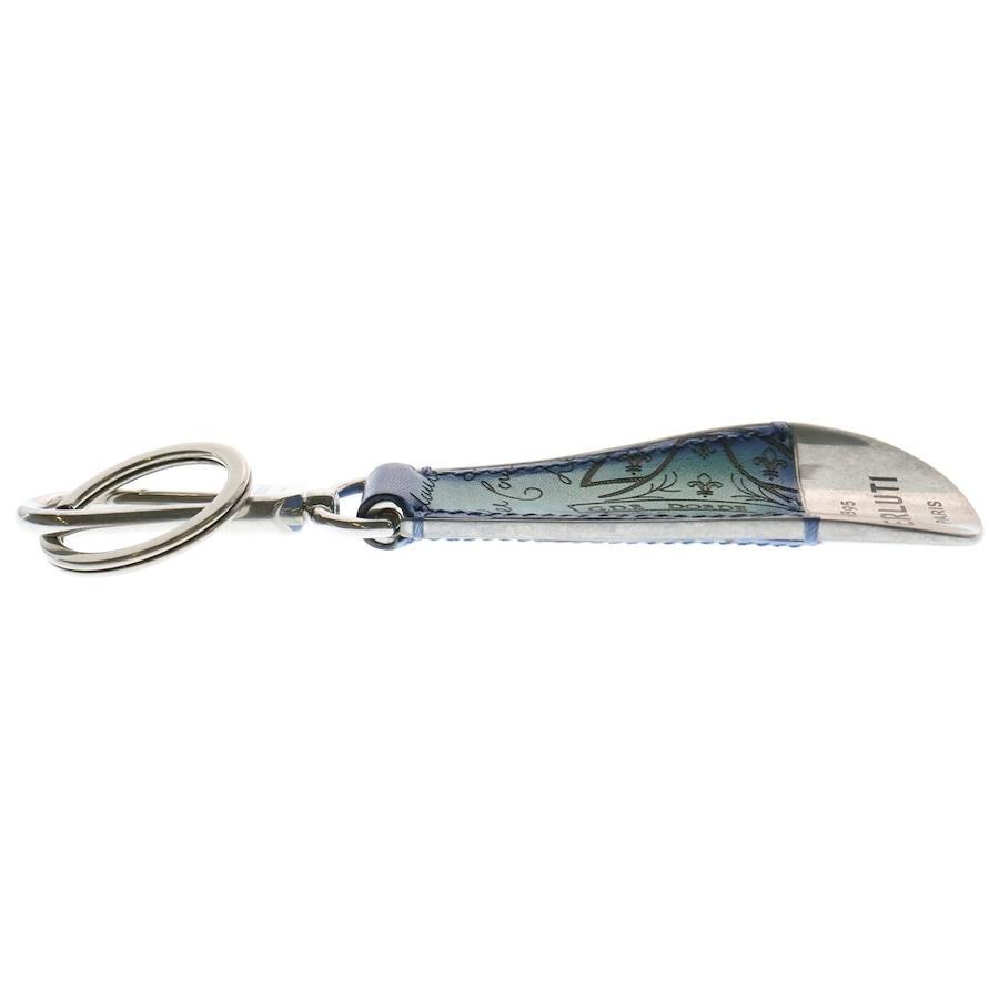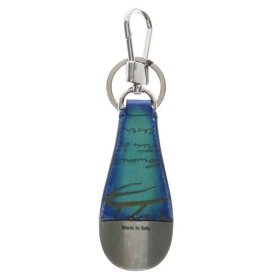 [モデル]スクリットレザー カリグラフィ メタルシューホーン 靴べら キーリング ブルー/シルバー
