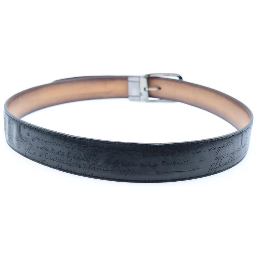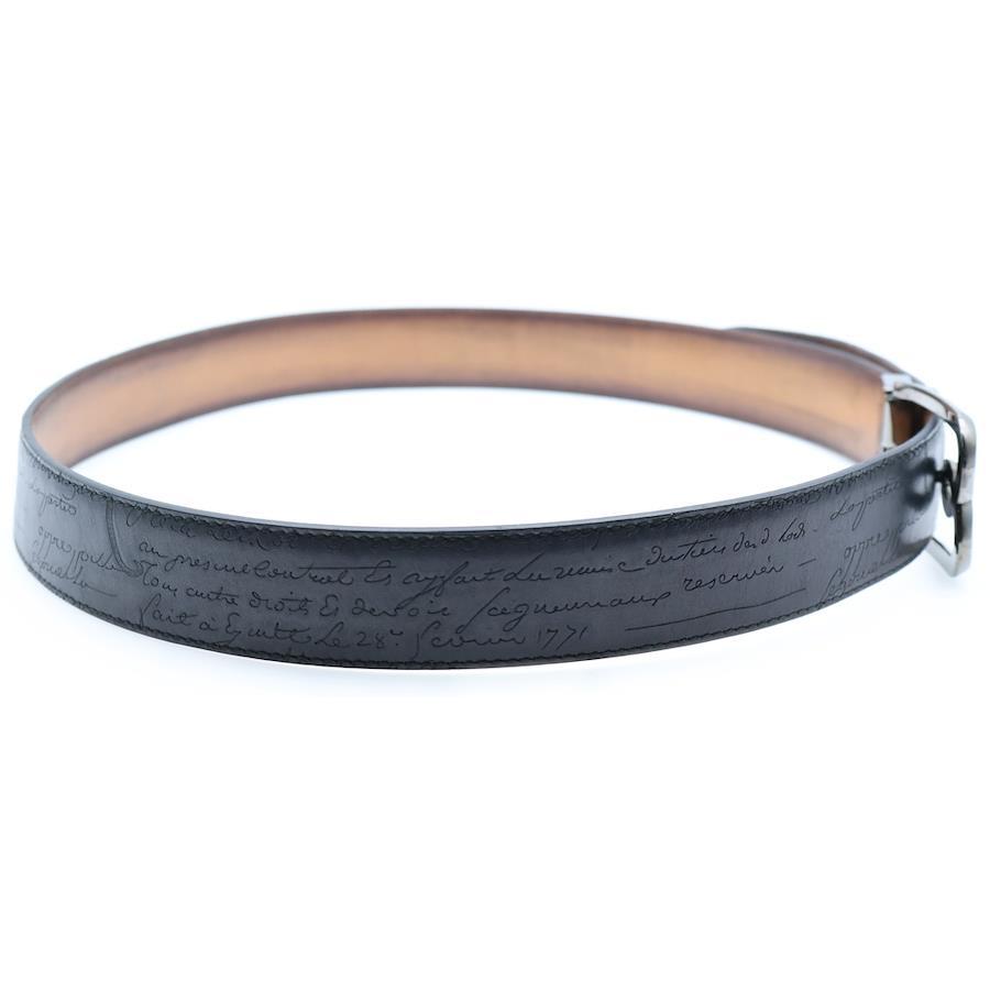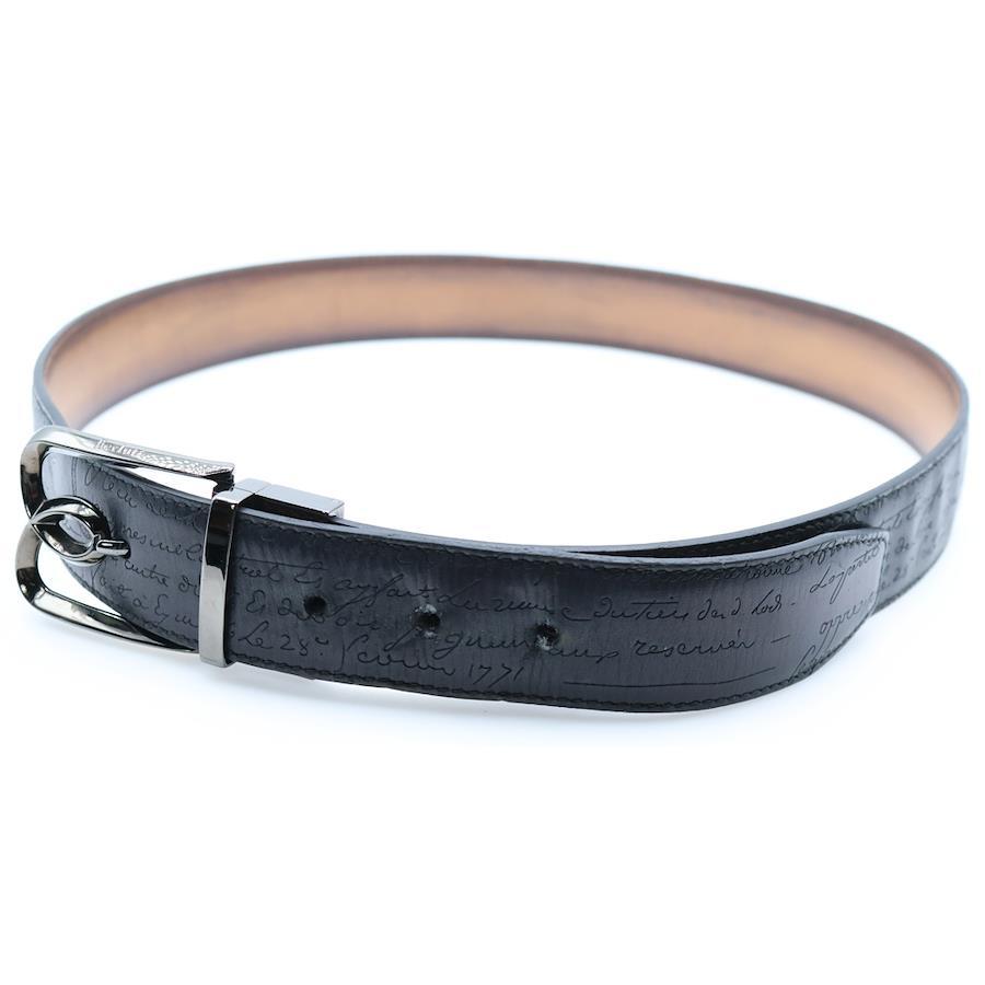 [モデル]スクリット カリグラフィ ブラック レザー ベルト