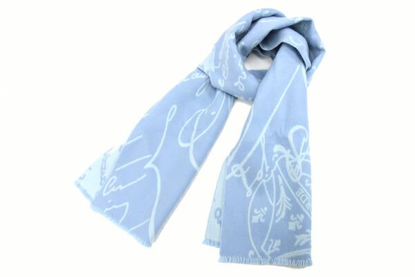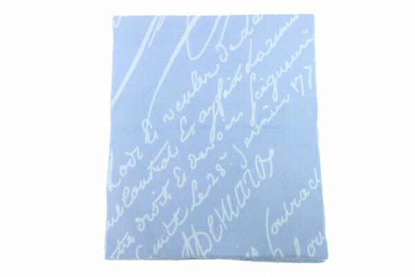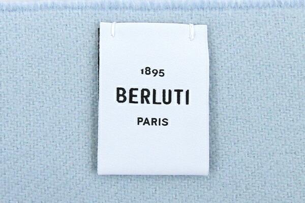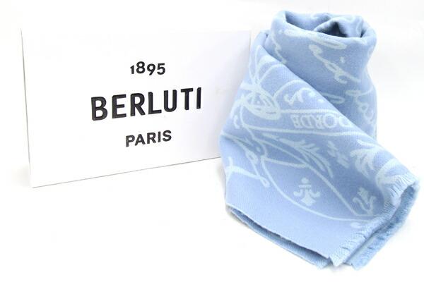 ベルルッティマフラーウールスクリットスカーフSJ120-WDASペールブルーウール100%中古ショールストールロゴメンズ男性Berluti