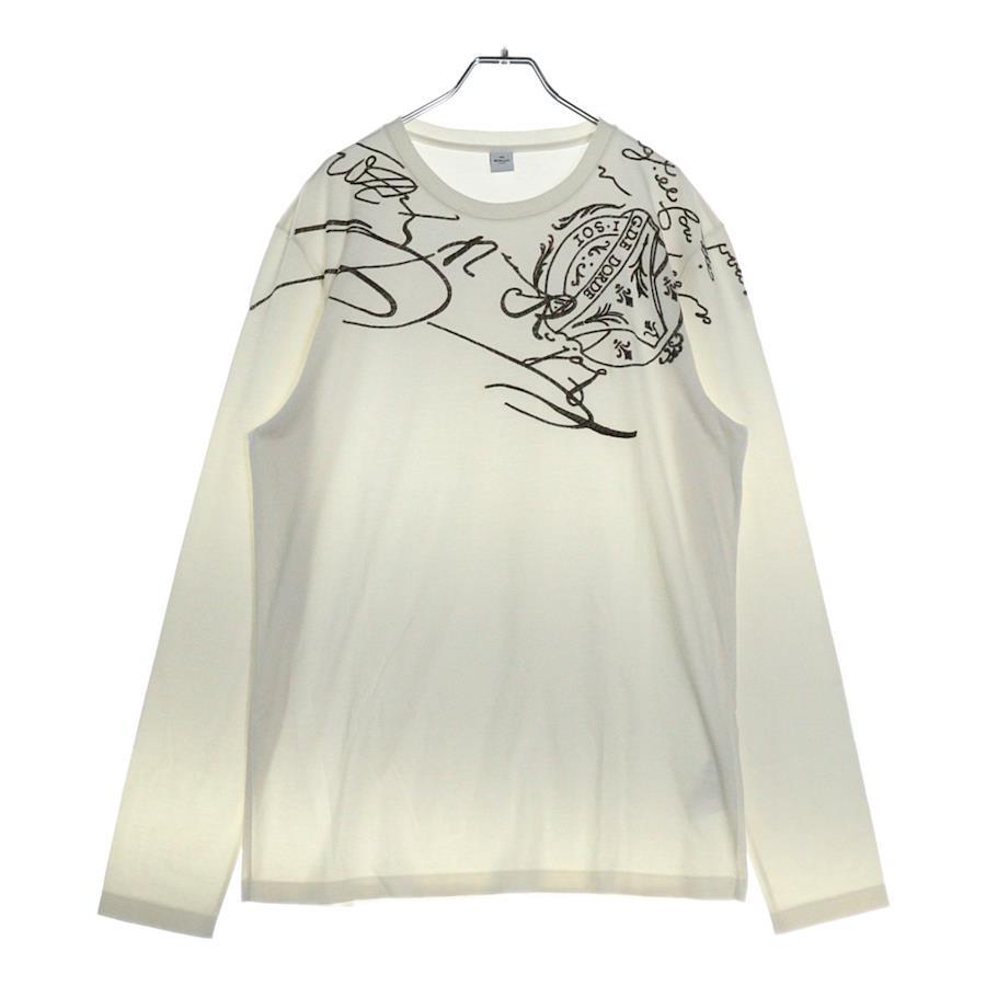 [モデル]23SS カリグラフィ フロント刺繍デザイン クルーネック長袖Tシャツロングスリーブカットソー ロンT ホワイト R23JRL66JAEK