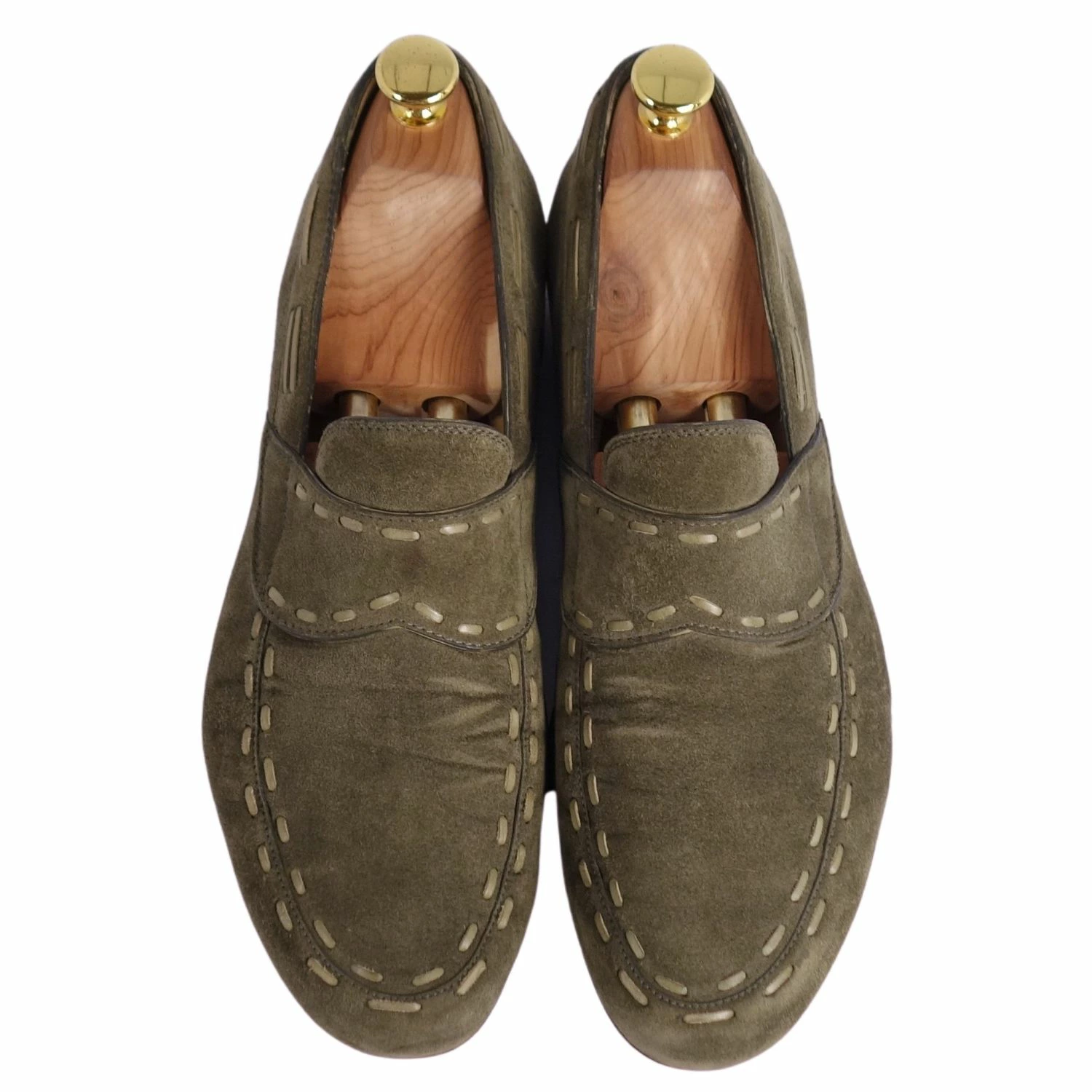 Berluti Men's Suede Leather Loafers and Moccasins, Size 6.5 (equivalent to 25.5cm), Khaki Green [Pre-owned]