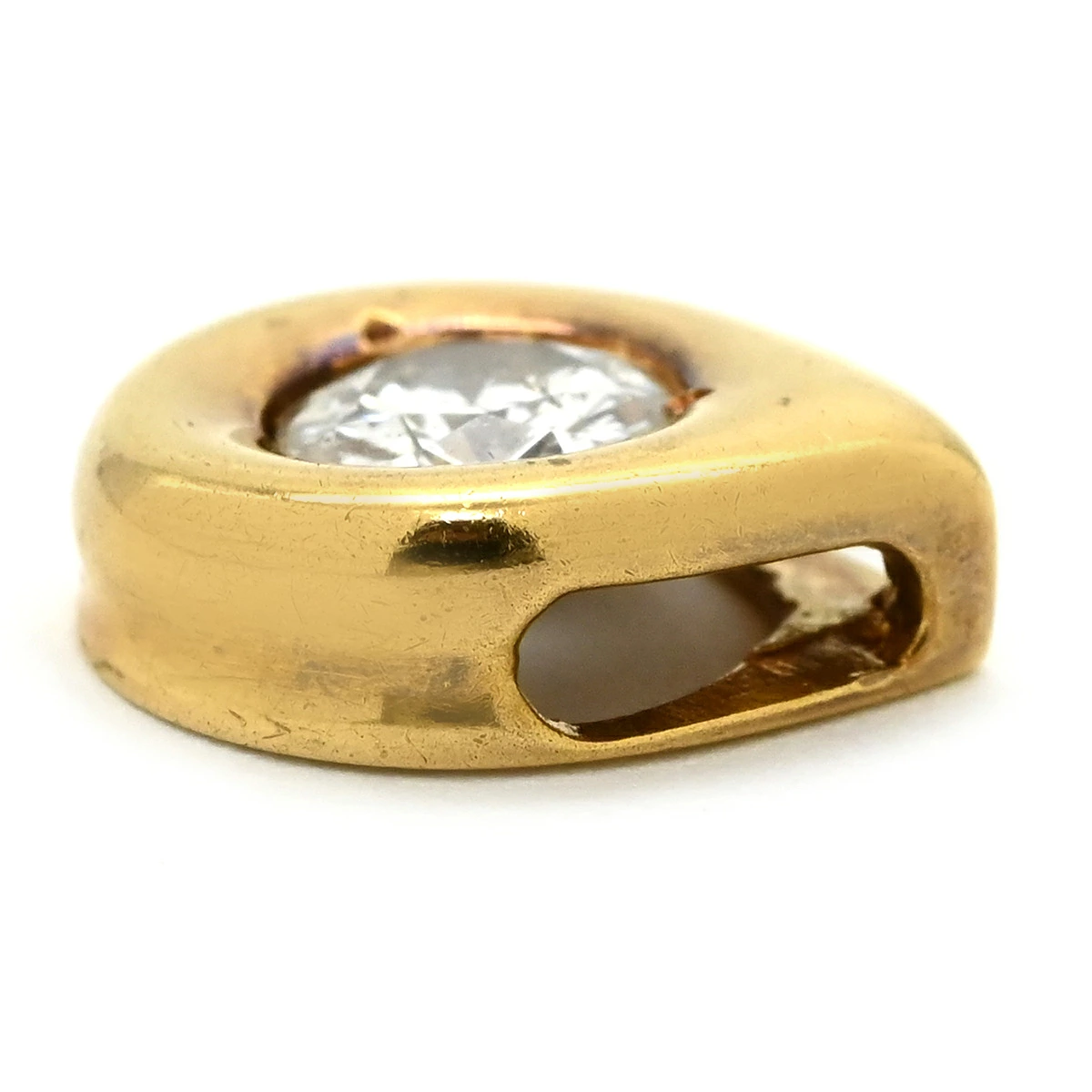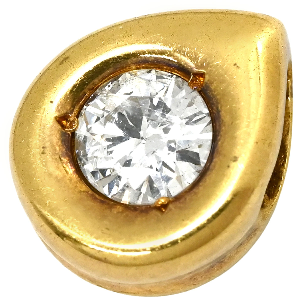 Pre-owned yellow gold pendant head (Au750, 18K gold), featuring a single diamond and a teardrop shape.