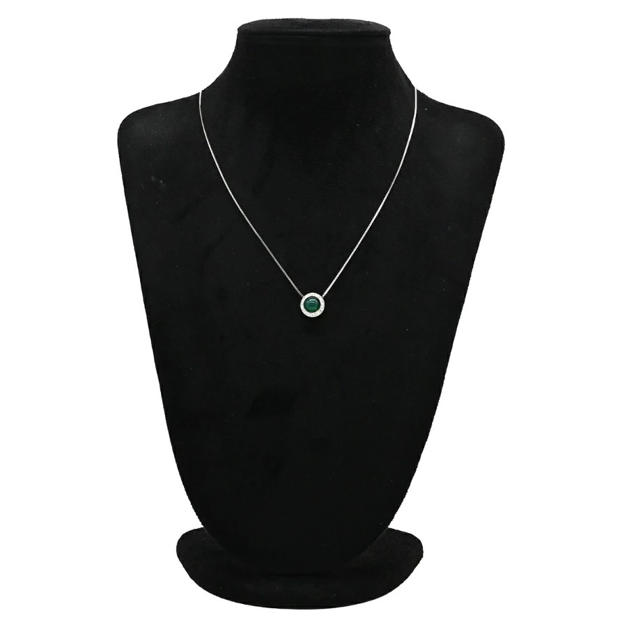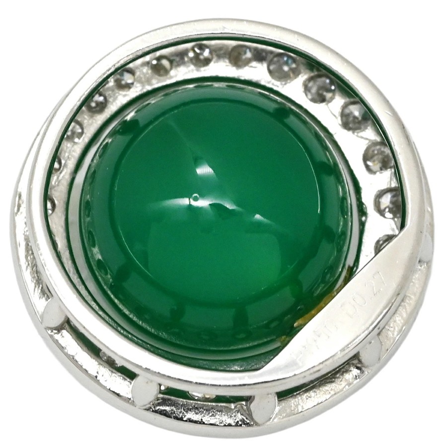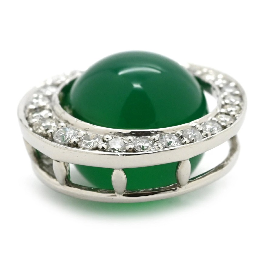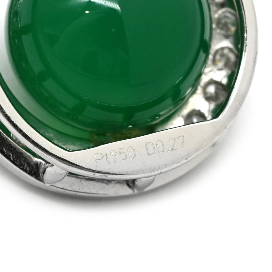 ▲クリックで拡大されますノンブランド NON BRAND ペンダントトップ カルセドニー ダイヤ Pt950 ダイヤモンド カルセドニー プラチナシルバー グリーン 緑 クォーツ ラウンド レディース 【中古】