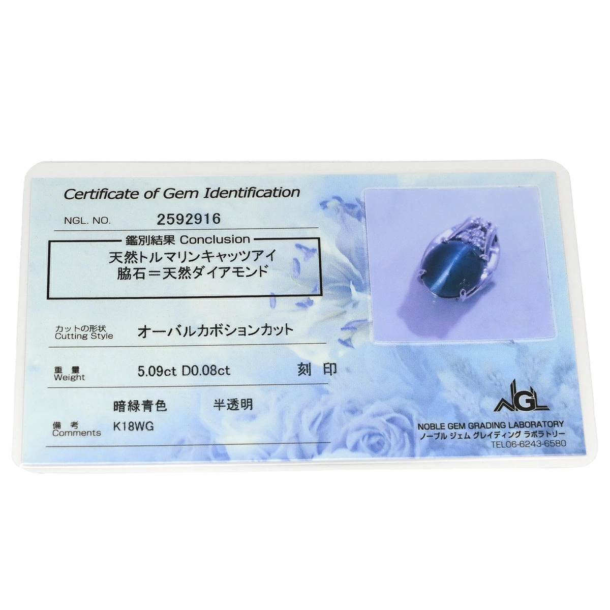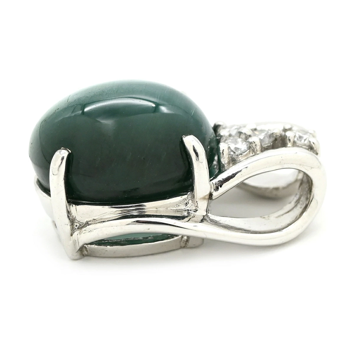 ノンブランド NON BRAND ペンダントトップ トルマリン キャッツアイ ダイヤ K18WG ダイヤモンド トルマリンキャッツアイ ホワイトゴールド 緑 オーバルカボションカット 18K 18金 ネックレストップ 天然石 レディース定番 人気 美品 【中古】