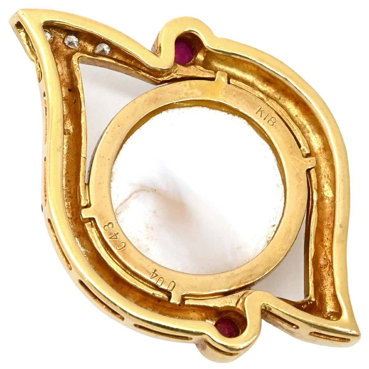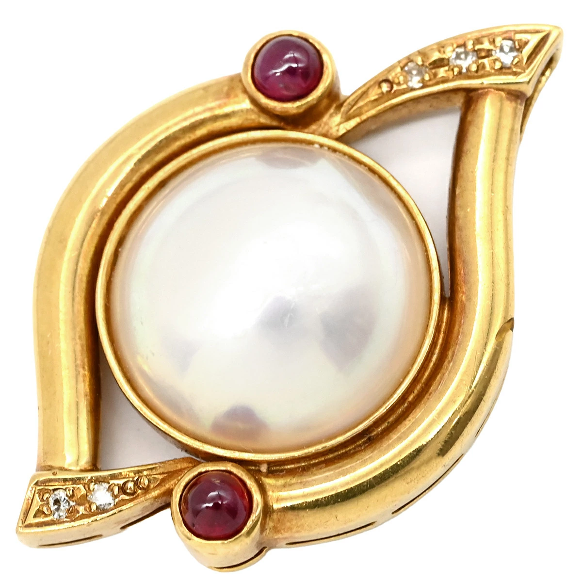 ノンブランド NON BRAND ペンダントトップ パール ルビー ダイヤ K18YG パール ダイヤモンド ルビー パールホワイト×イエローゴールド 赤 ネックレストップ マベパール ホワイトパール 真珠 18K YG 750 - レディース 【中古】