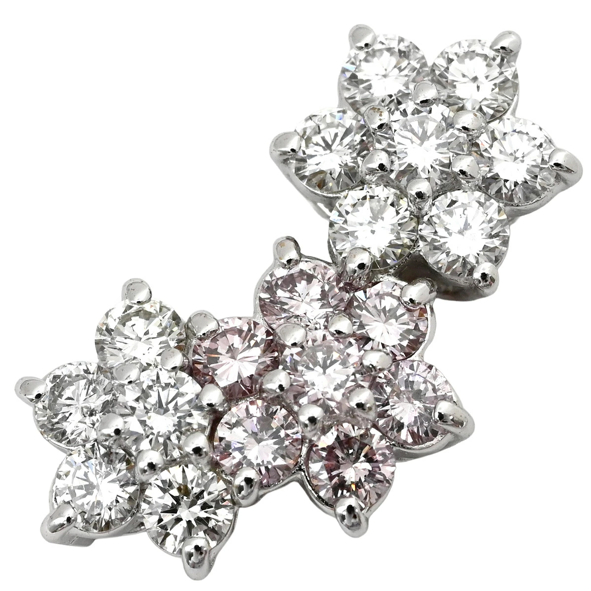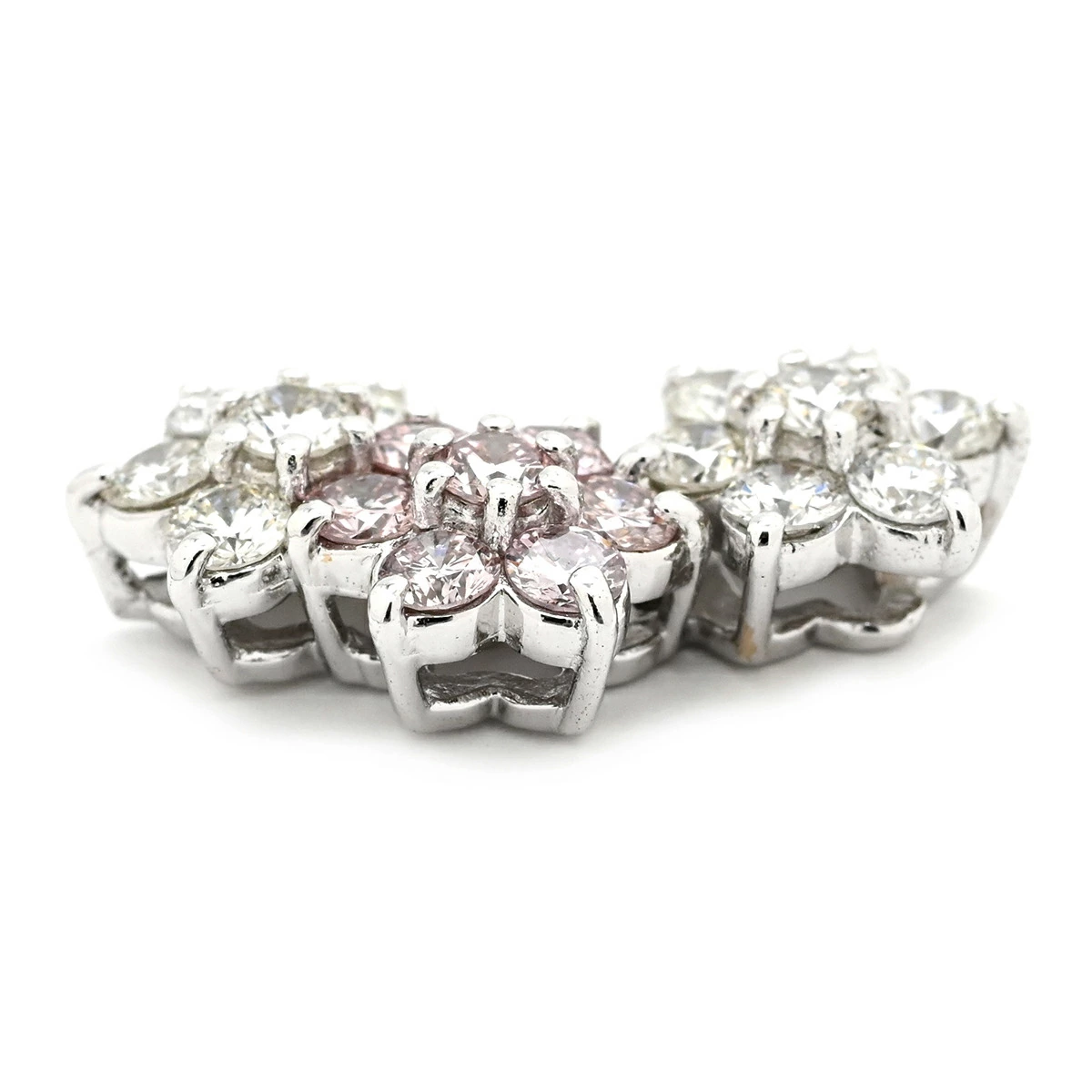 ノンブランド NON BRAND ペンダントトップ K18WG ダイヤモンド ホワイトゴールド Au750 18K 18金 ダイヤモンド 1.20ct 3連 フラワーモチーフ ネックレストップ 花 ピンク WG チャーム - レディース 【中古】