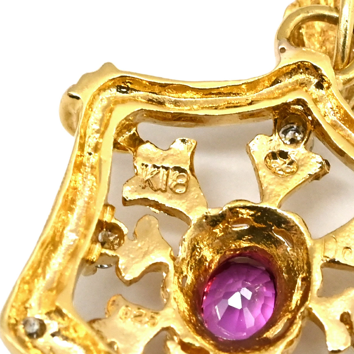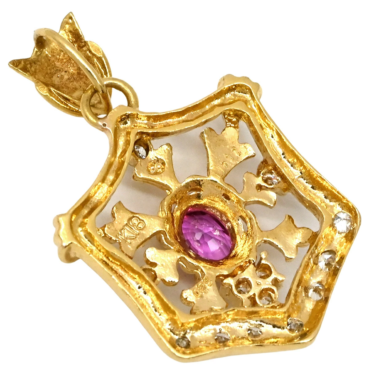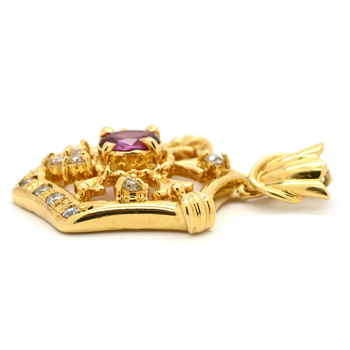 ▲クリックで拡大されますノンブランド NON BRAND ペンダントトップ K18YG ダイヤモンド ルビー イエローゴールド Au750 18K 18金 ダイヤ ルビー ペンダントトップ エンブレムモチーフ - レディース定番 人気 美品 【中古】