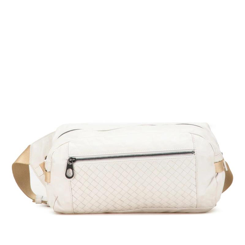Pre-owned Bottega Veneta Intrecciato Waist Bag in White and Beige Leather. Women's.