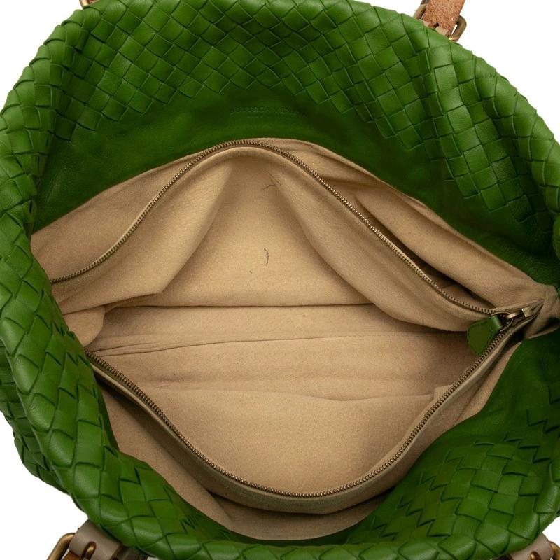 - ボッテガヴェネタ イントレチャート トートバッグ ショルダーバッグ グリーン グレー レザー レディース BOTTEGAVENETA 【中古】
