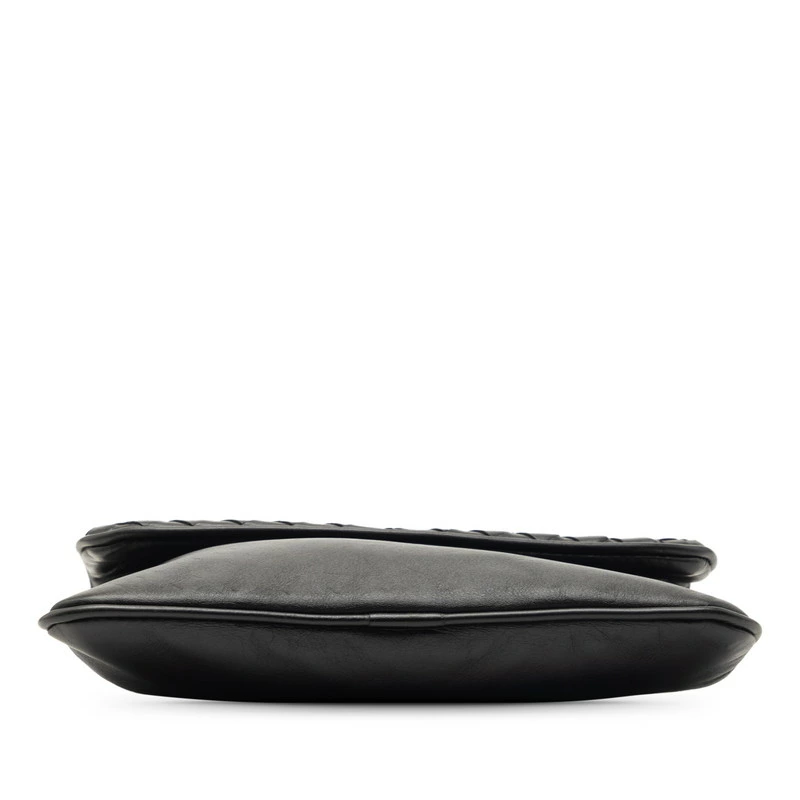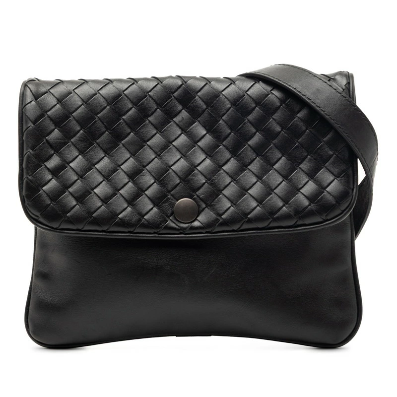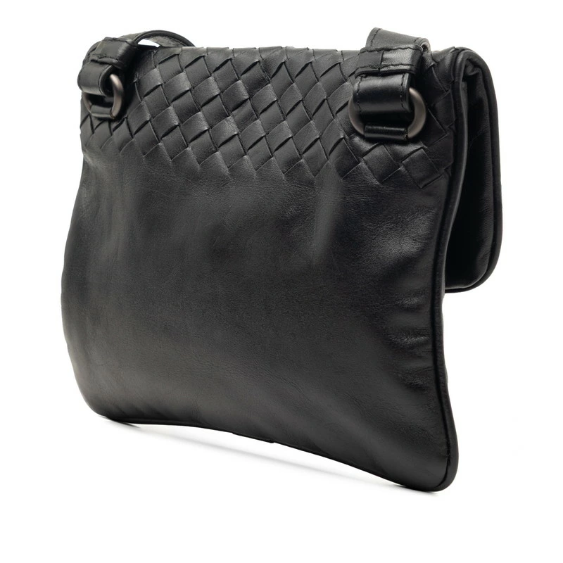 - ボッテガヴェネタ イントレチャート 斜め掛け ショルダーバッグ ポシェット ブラック レザー レディース BOTTEGAVENETA 【中古】