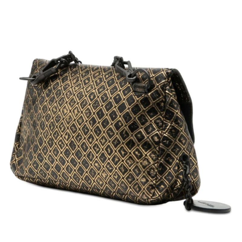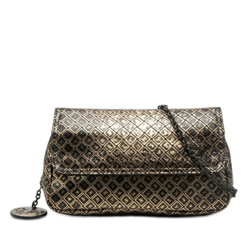 - ボッテガヴェネタ イントレッチオミラージュ チェーンショルダーバッグ ブラック ゴールド レザー レディース BOTTEGAVENETA 【中古】