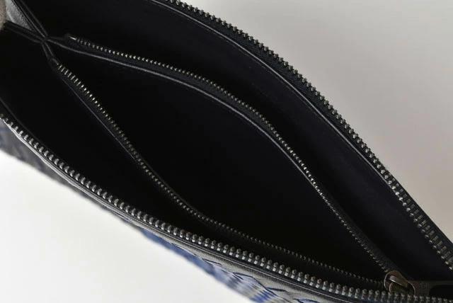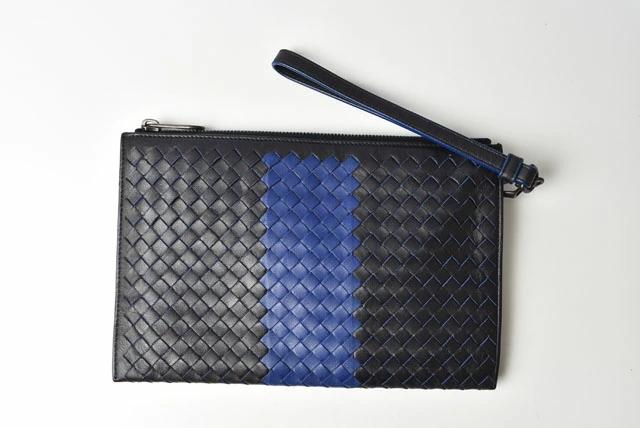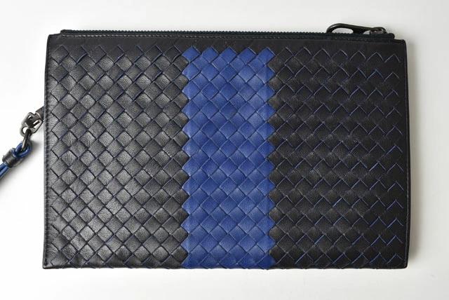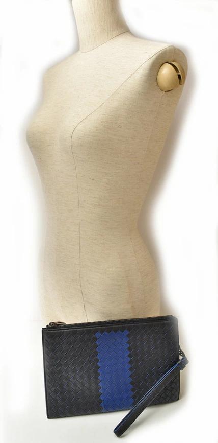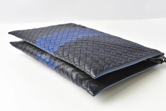 BOTTEGA VENETA ドキュメントケース ストラップ付 イントレチャート ブラック/ブルー