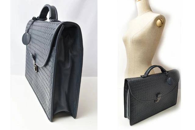 ボッテガヴェネタより、ビジネスバッグ/ブリーフケースです。上質なレザーをなめし、とてもしなやかな手触りに仕上がっており、風格を漂わせます。共通のイントレチャートに、ステッチも編み込んであります。ヴィンテージ風の金具が味わい深いバッグ。A4サイズの収納も可能で、ビジネスシーンにも最適です。