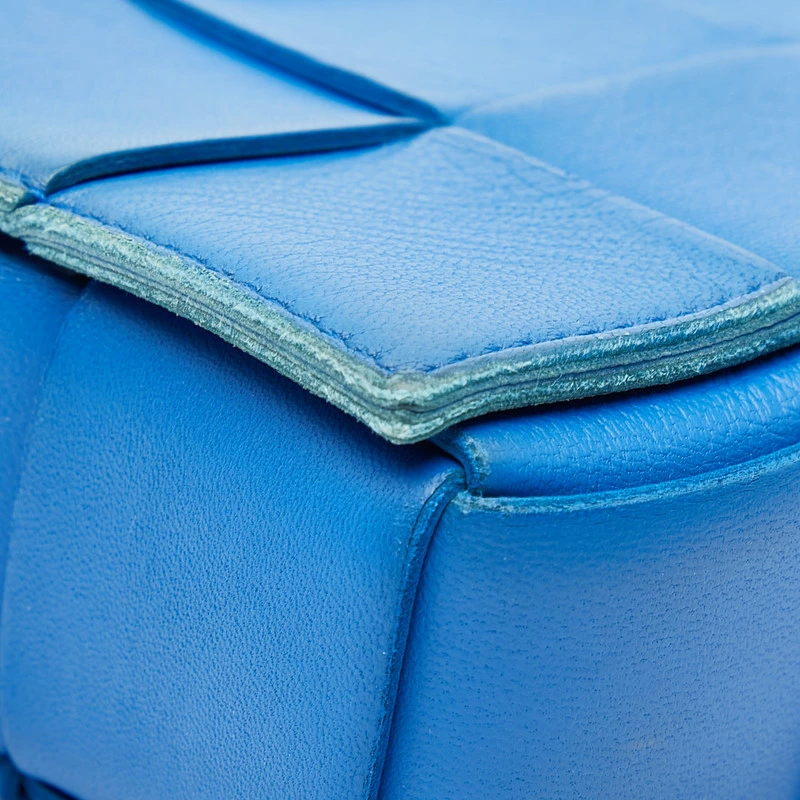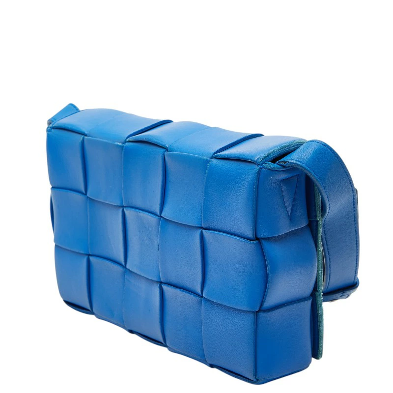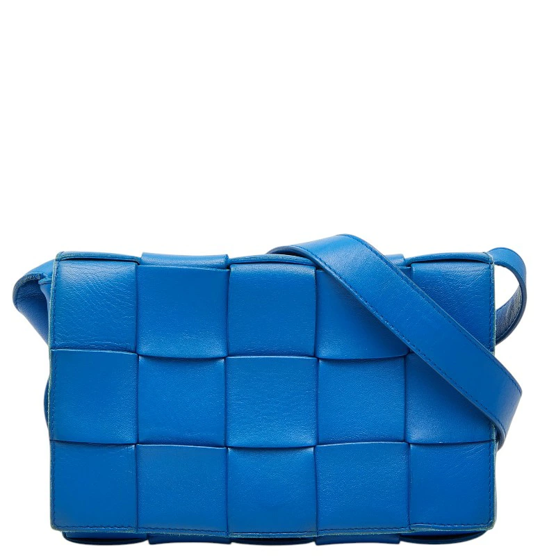 - ボッテガヴェネタ マキシイントレチャート 斜め掛け ショルダーバッグ ブルー レザー レディース BOTTEGAVENETA 【中古】