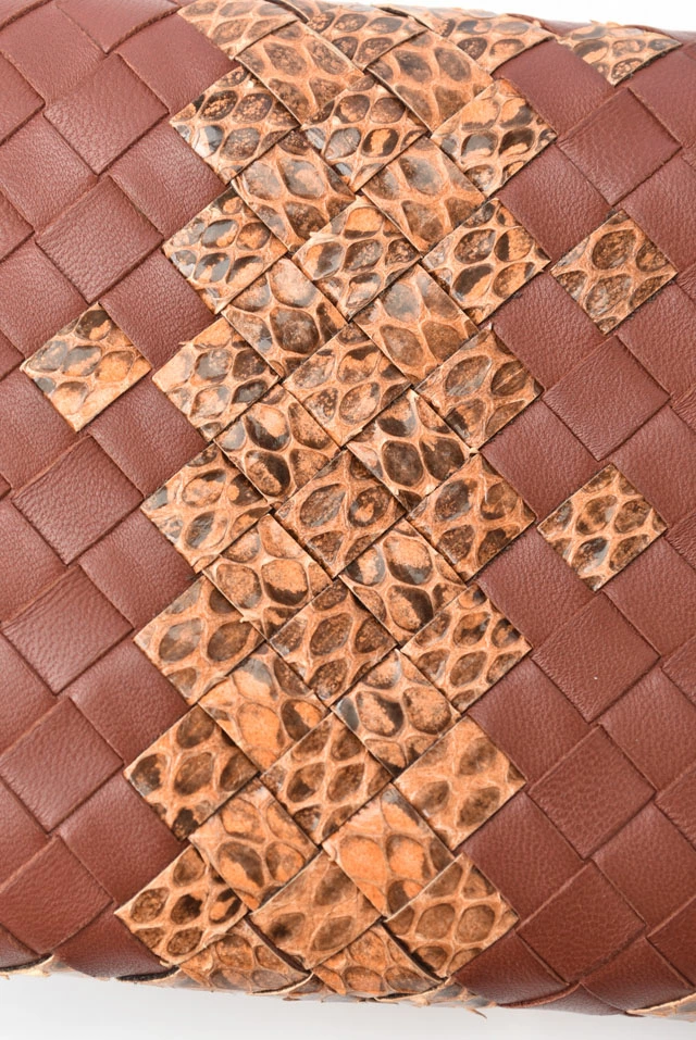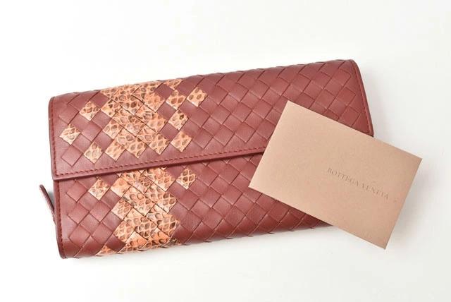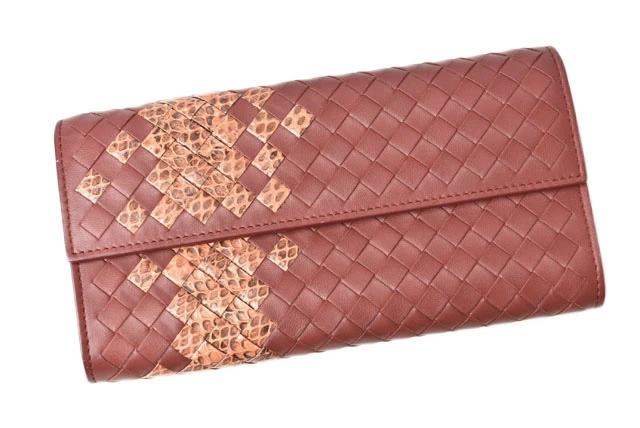 BOTTEGA VENETA 長財布 イントレチャート/アイヤーズ/パイソン ブラウン/ベージュ