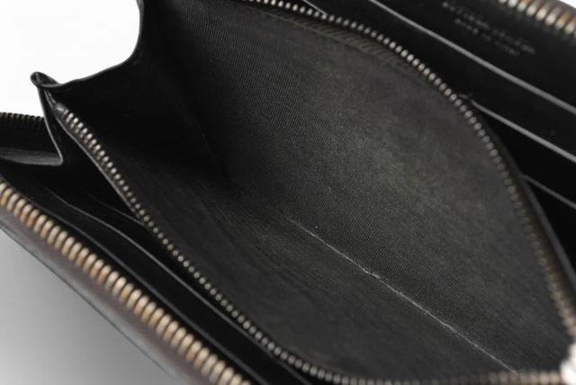 ボッテガヴェネタより、ラウンドファスナー式の長財布です。人気の高いイントレチャートは、上質なレザーをなめし、とても柔らかな手触りに仕上がっており、風格を漂わせます。収納力抜群で、ポケットもたくさんあり、多くなりがちな財布中身も、すっきり片付きます。
