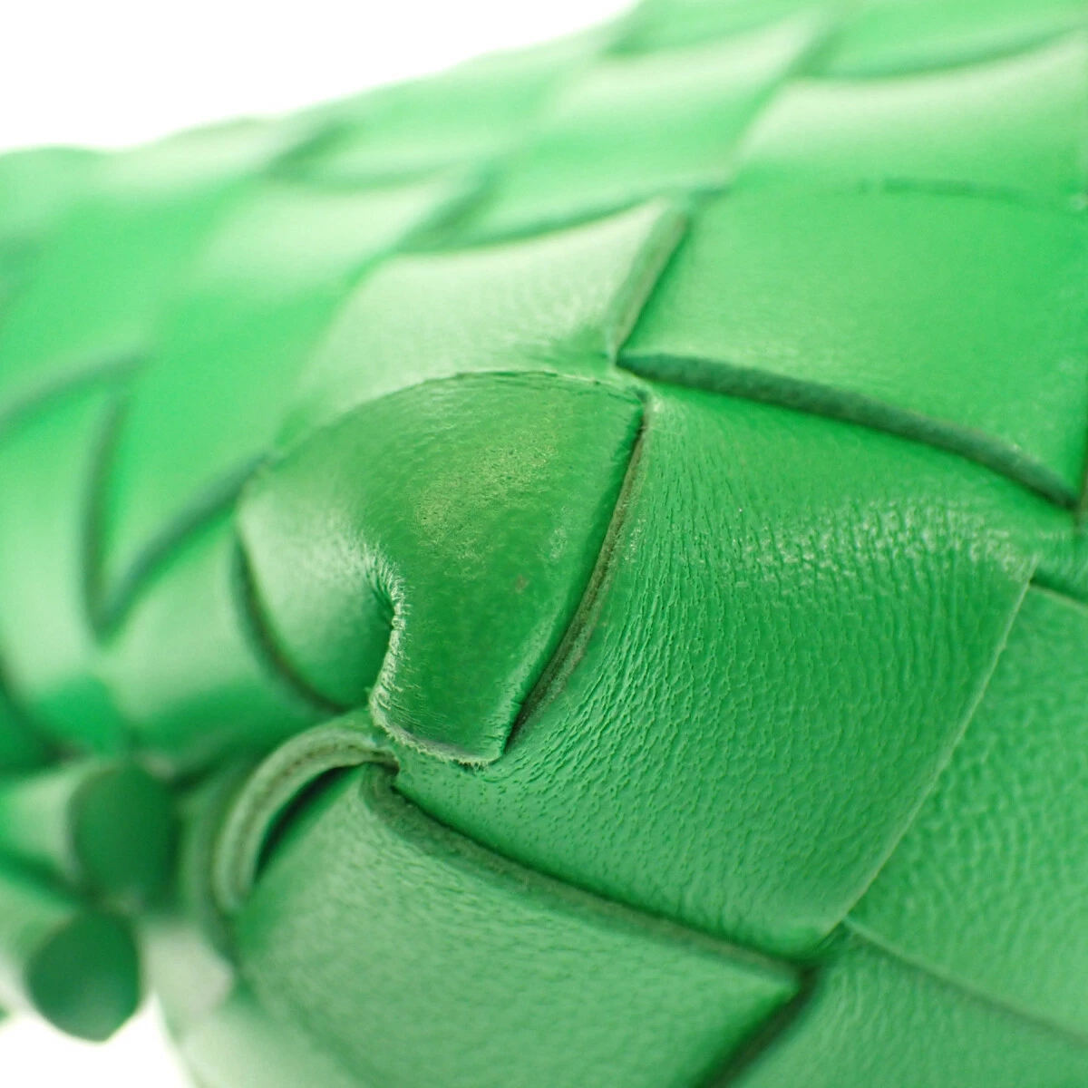 鮮やかなグリーンのイントレチャートレザーで編み込まれたアイテム。