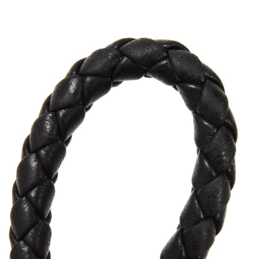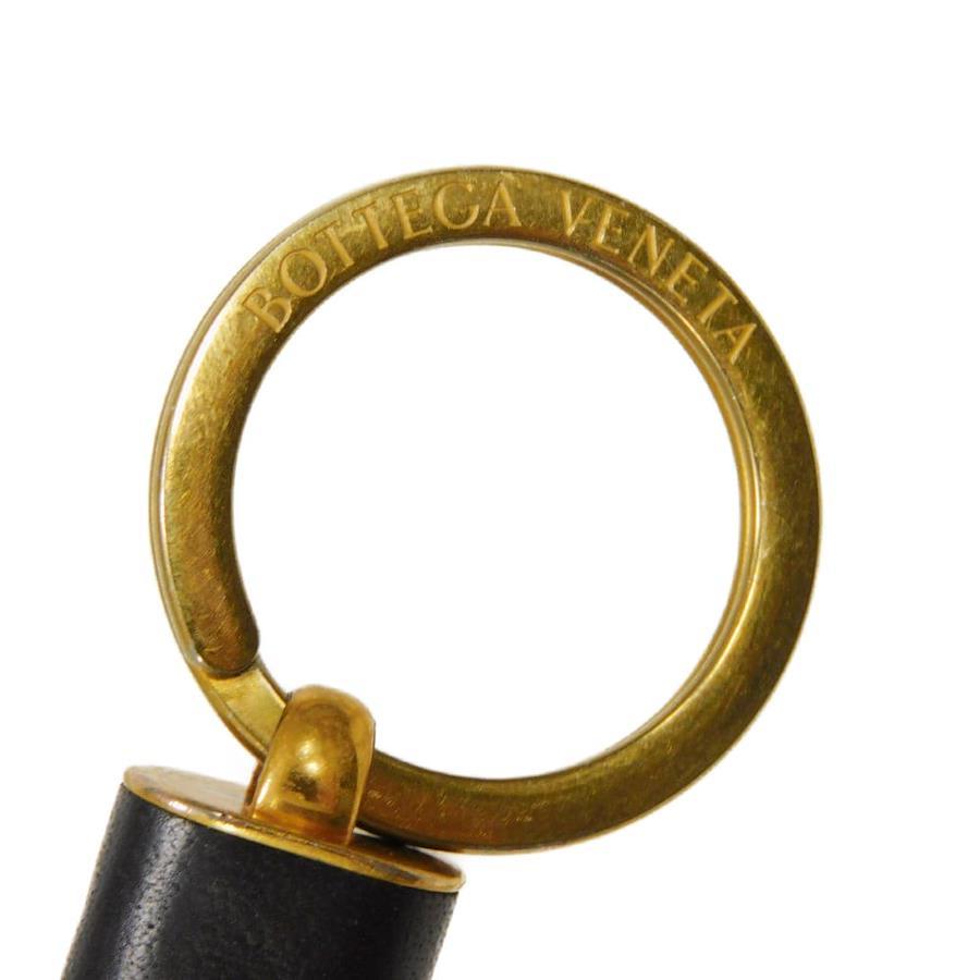 | 編み込みモチーフのレザーにボッテガヴェネタのロゴが刻印されたリングを組み合わせた「イントレチャート キーリグ」キーホルダーです。 |