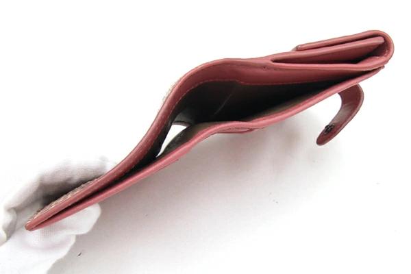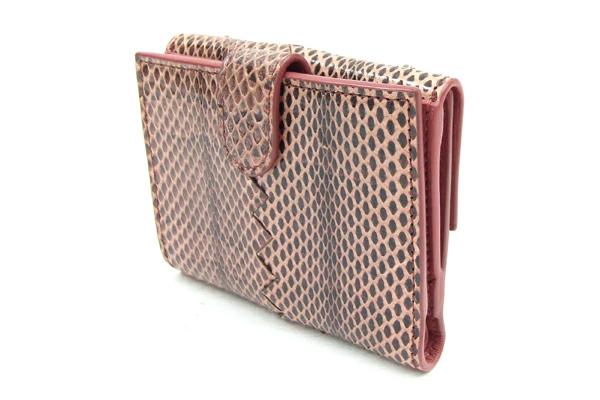 Pre-owned Bottega Veneta W-hook wallet in pink python leather. Compact, bi-fold wallet with exotic leather studs. Women's. BOTTEGA VENETA