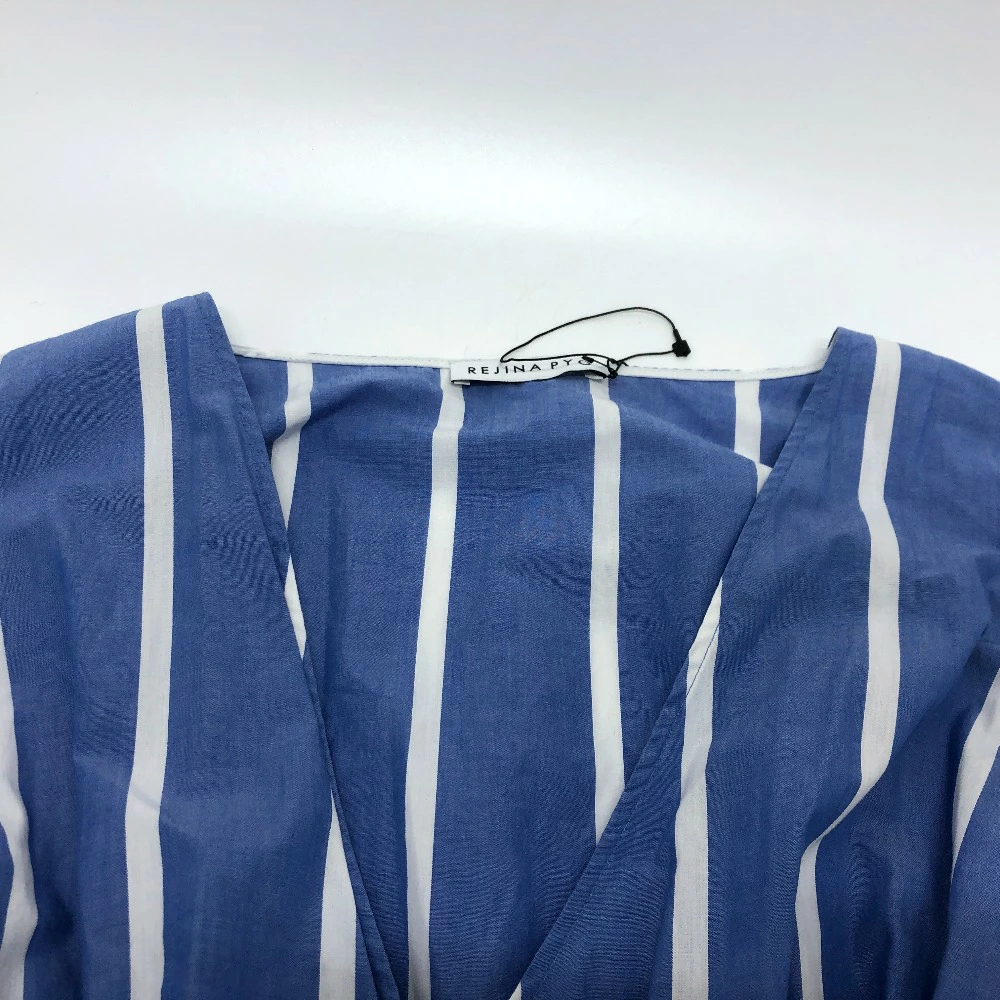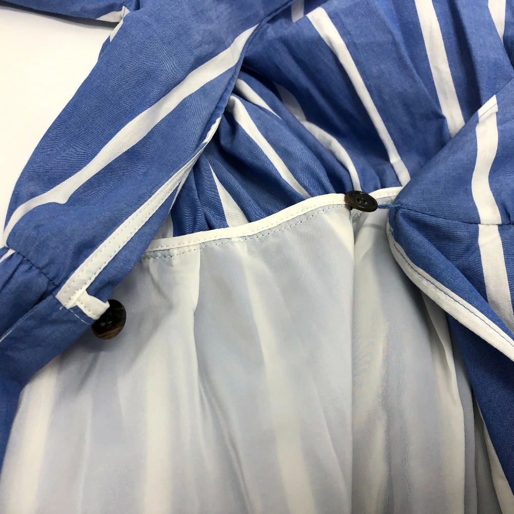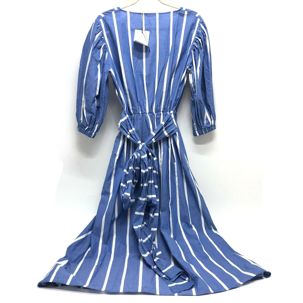 Pre-owned, unused, blue, cotton striped dress for women.