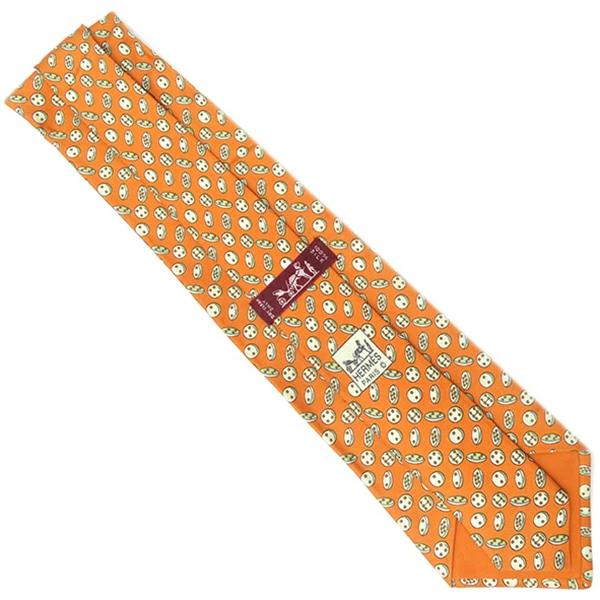 エルメス HERMES ボタン 9cm ネクタイ シルク オレンジ×ベージュ - メンズ定番 人気 美品 【中古】