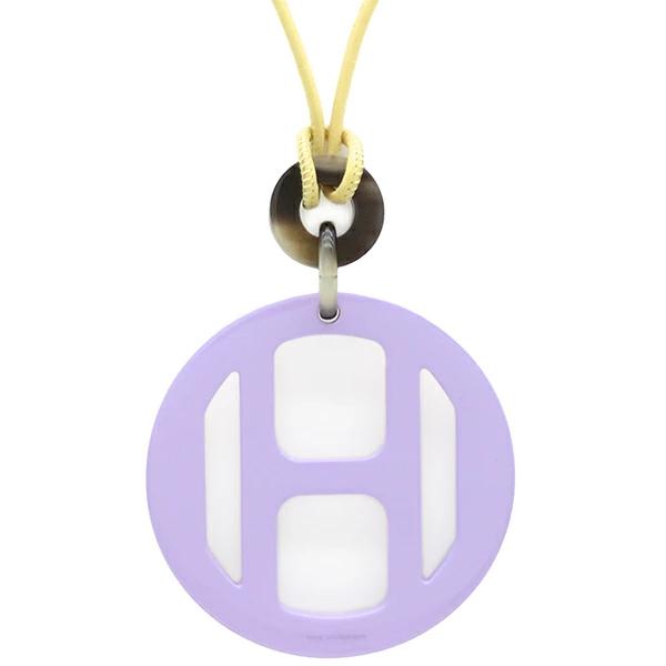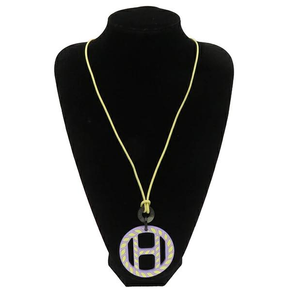 ▲クリックで拡大されますエルメス HERMES Hエキップ Hエキップ ネックレス バッファローホーン レザー ラッカー パープル×イエロー 紫 黄色 H057087FL01 メンズ レディース ユニセックス 【箱】定番 人気 美品 【中古】