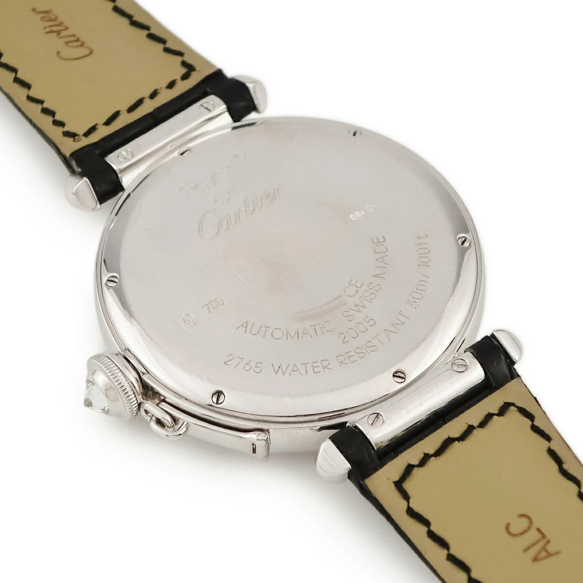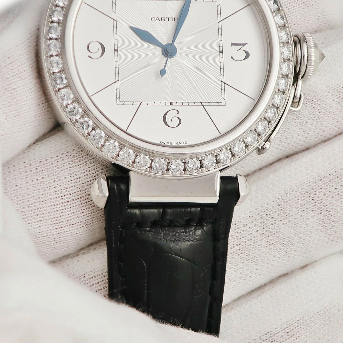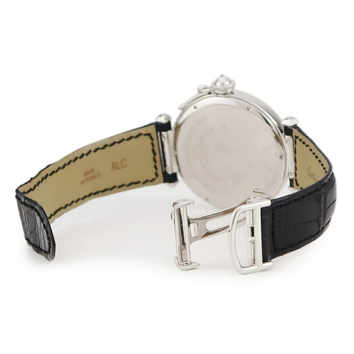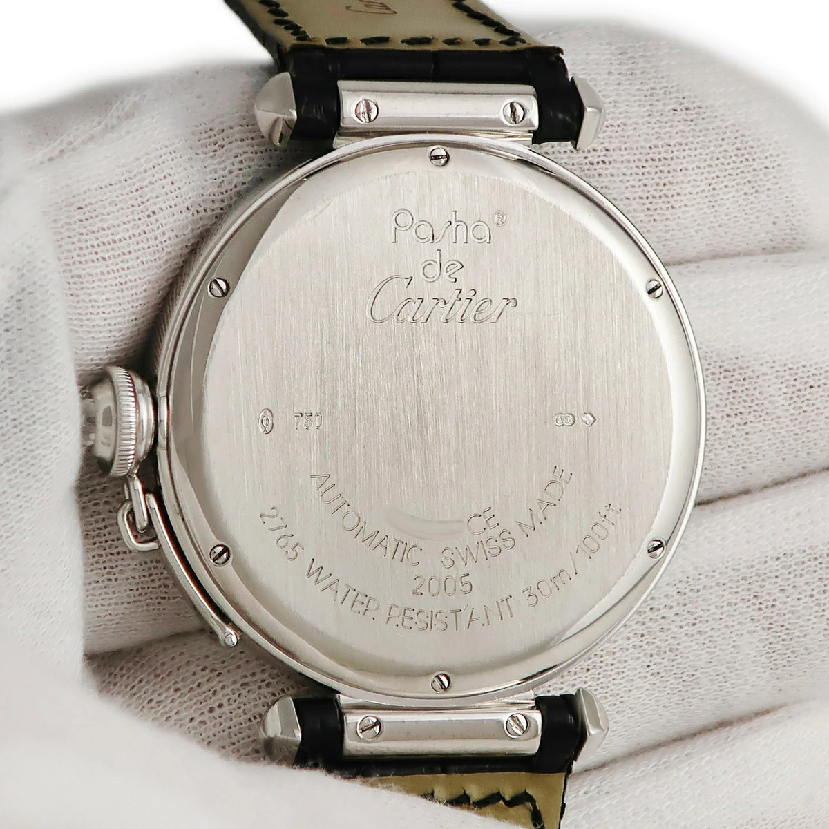 カルティエ Cartier パシャ ドゥ カルティエ ダブルバリレット WJ118751 K18WG無垢 純正ダイヤ 青針 メンズ 腕時計自動巻き シルバー 【中古】【店頭受取不可】 管理コード240500493050 (ムーブメント点検済) (平均日差+4秒) コンディション詳細:中古美品 中古A品(バンドA(バックル跡に剥がれ有)) (細かなスレ、ケースまわりに僅かなくすみ、裏蓋に線スレなどは御座いますが、大きなダメージは無く状態の良い綺麗なお品物です。)
