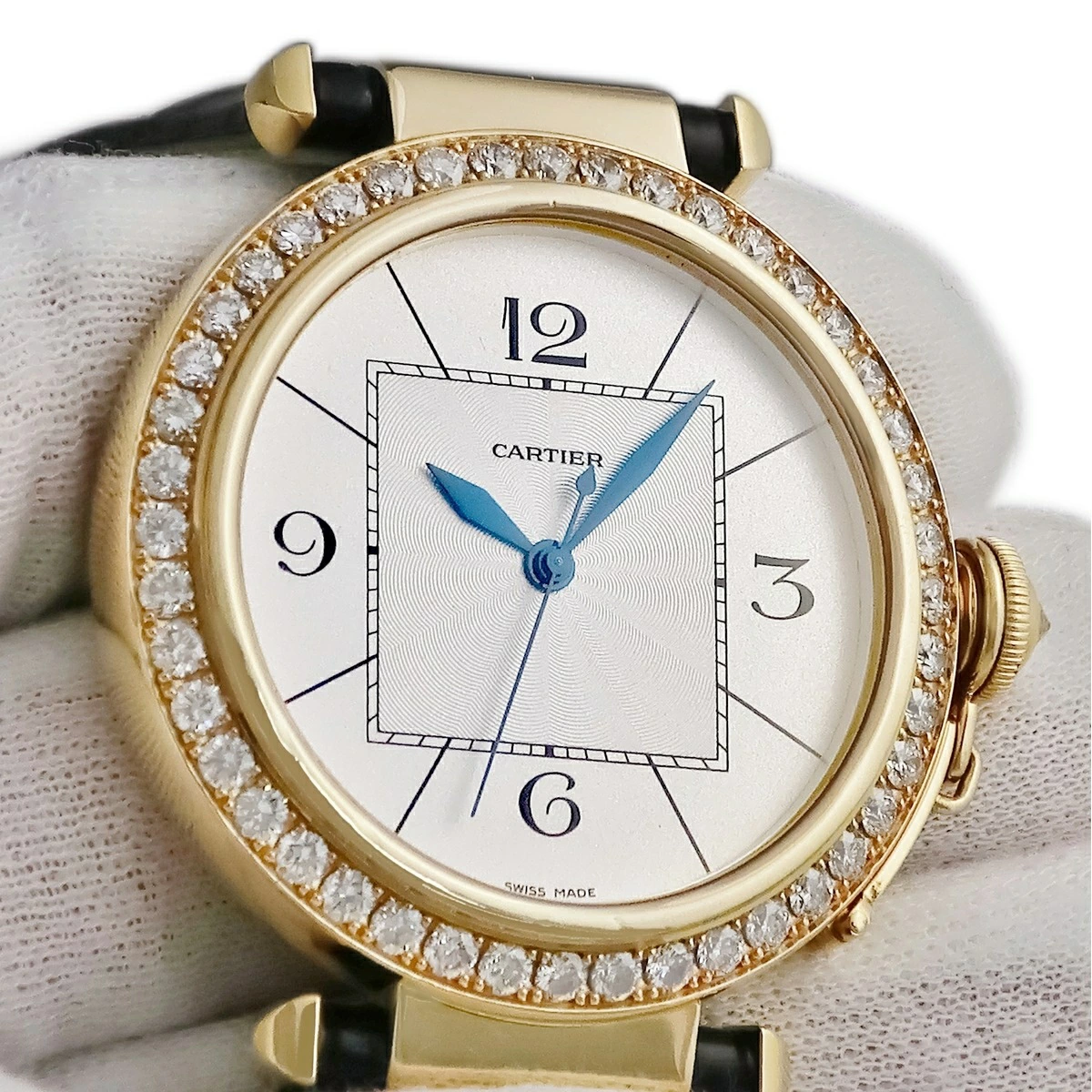 カルティエ Cartier パシャ ドゥ カルティエ ダブルバレル WJ120351 K18YG無垢 純正ダイヤ 青針 メンズ 腕時計自動巻き シルバー 【中古】【店頭受取不可】