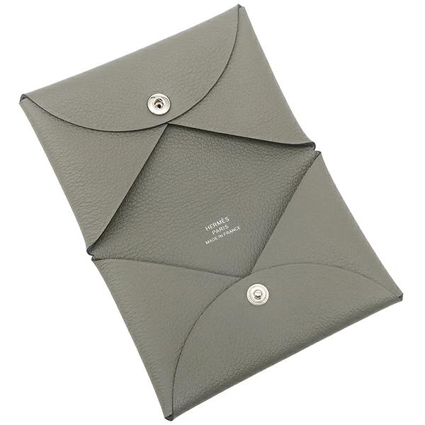 エルメス HERMES カルヴィ カルヴィ カードケース エバーカラー グリメイヤー グレー シルバー金具 B刻印(2023年製) - レディース 【箱】定番 人気 美品 【中古】