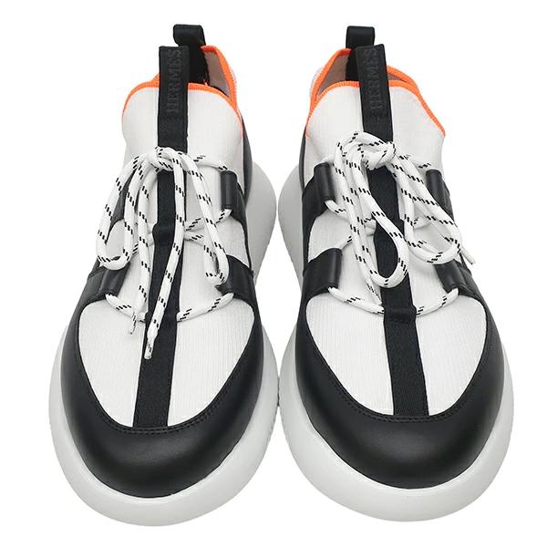 ▲クリックで拡大されますエルメス HERMES デュエル DUEL スニーカー ファブリック レザー ホワイトXブラック 白 黒 スリッポン 新品 未使用 H212911Z メンズ 【保存袋】 【中古】