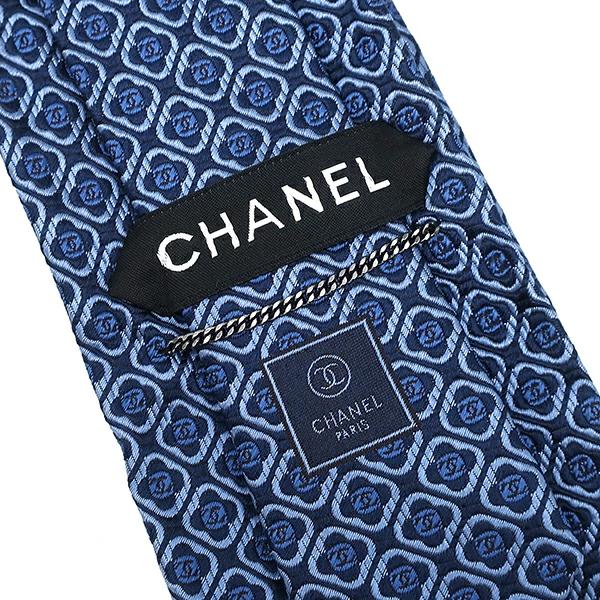 シャネル CHANEL ネクタイ ココマーク 花 ダイヤ柄 9.5cm シルク ブルー×ネイビー 青 紺 - メンズ定番 人気 美品 【中古】