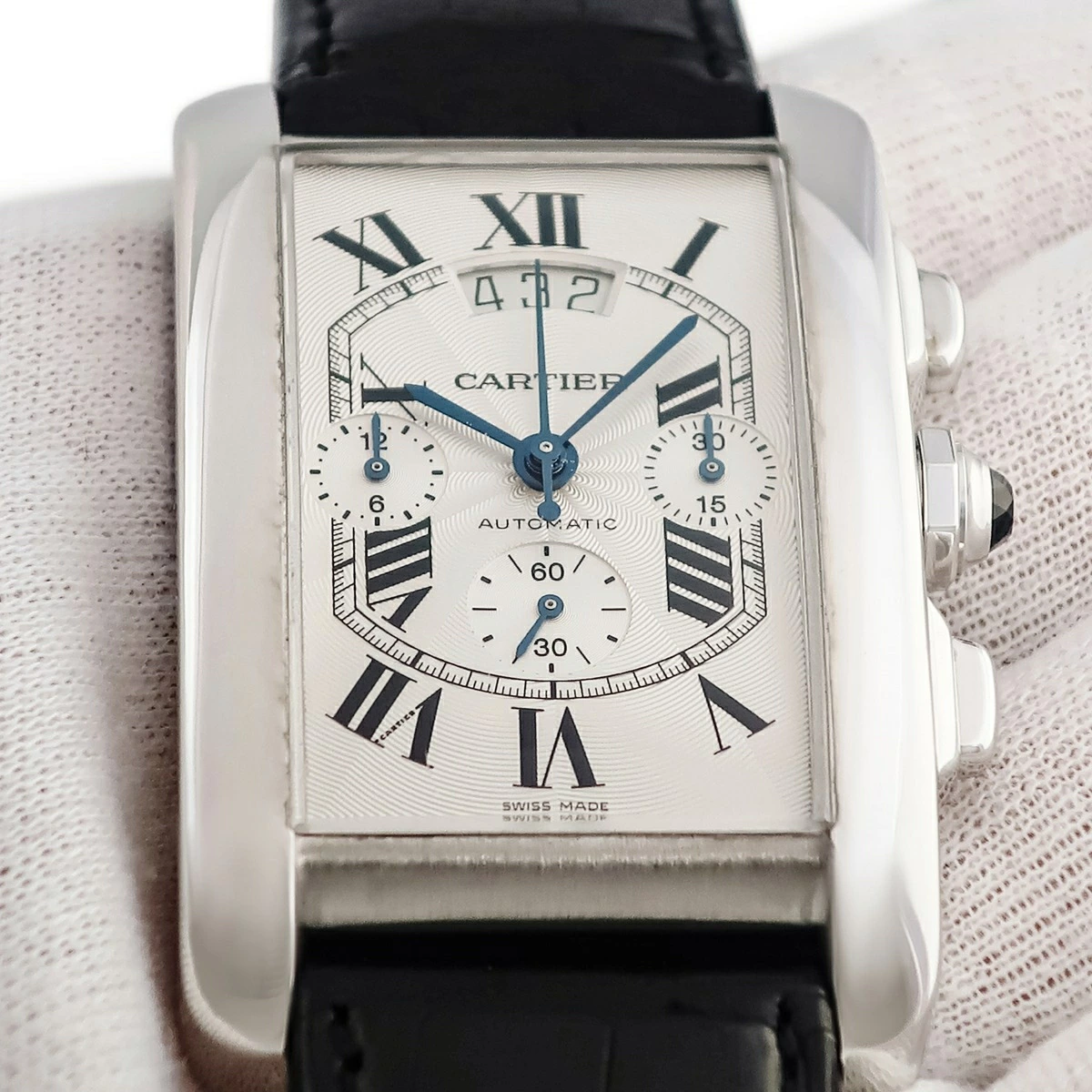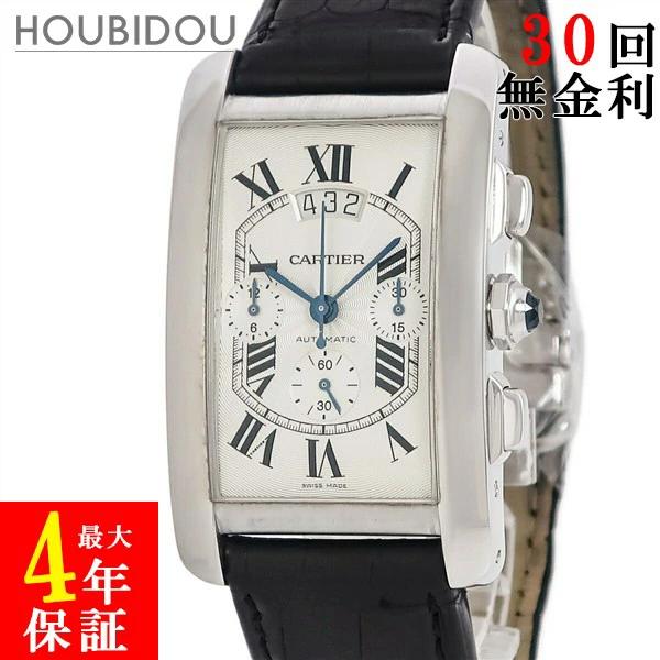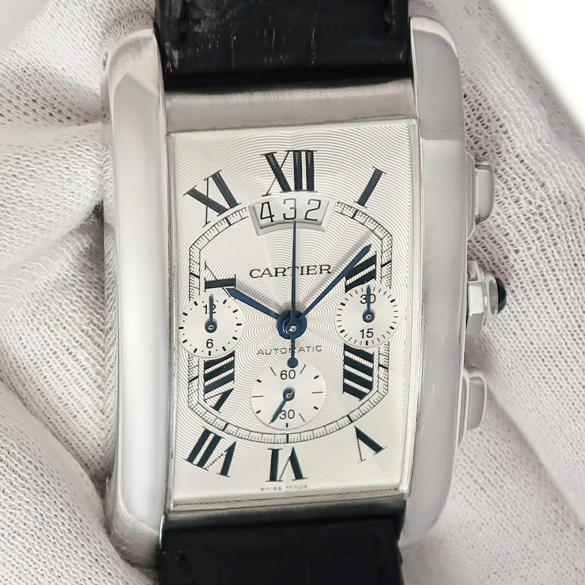 カルティエ Cartier タンク アメリカン クロノグラフ XL W2609456 メーカーOH済 K18WG無垢 シルバー ギヨシェ メンズ 腕時計自動巻き シルバー 【中古】【店頭受取不可】