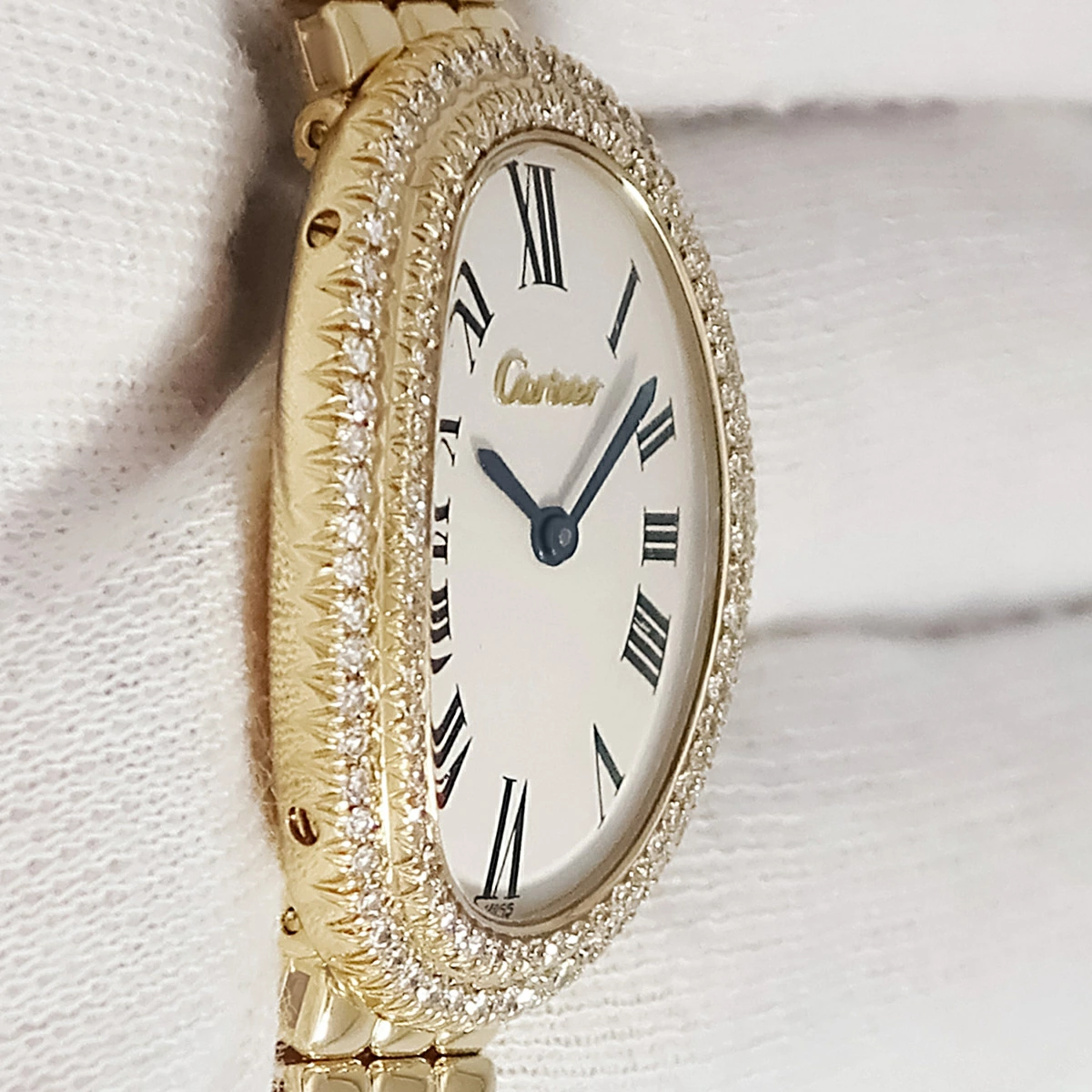 カルティエ Cartier ベニュワール SM 820911A6 OH済み K18YG無垢 純正ダイヤ オーバル ヴィンテージ レディース 腕時計手巻き ホワイト 【中古】【店頭受取不可】