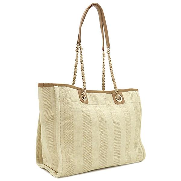 ▲クリックで拡大されますシャネル CHANEL トートバッグ ドーヴィル トートMM ファブリック レザー ベーシュ ショルダーバッグ チェーン ゴールド金具 29****** A67001 レディース 【保存袋】定番 人気 美品 【中古】