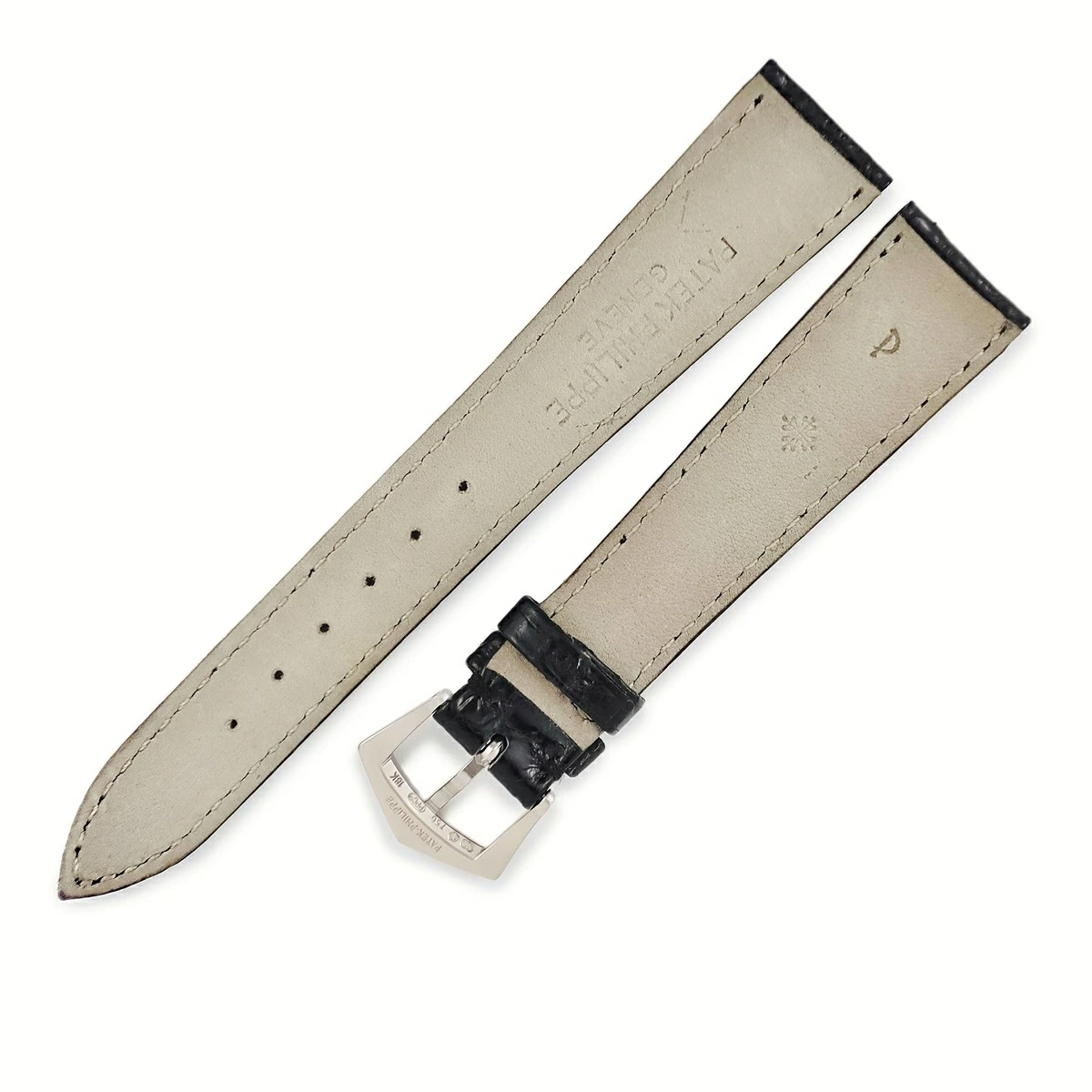 パテックフィリップ PATEK PHILIPPE 腕時計パーツ クロコダイル 純正K18WG製尾錠付き ブラック 純正 クロコ バンド K18WG 製尾錠付き 本革ベルト 替え 正規品 スペア 19mm ブラック 黒 - メンズ定番 人気 美品 【中古】 管理コード240500490134 コンディション詳細:中古美品 中古A品 (表面に細かいスレやバックル跡、裏面に僅かな色移りや薄汚れ、穴周りの僅かな広がりやクセ、尾錠に僅かなスレキズなどは御座いますが、その他大きなダメージは無く状態の良い綺麗なお品です。)