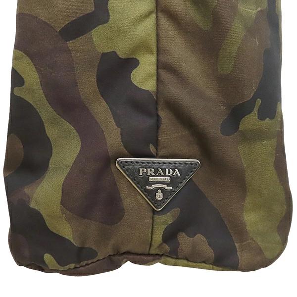 ▲クリックで拡大されますプラダ PRADA 2WAYバッグ 迷彩柄 リバーシブル 三角ロゴ ナイロン カーキ×ブラック 黒 緑 カモフラ柄 トート シルバー金具 BR4521 メンズ レディース ユニセックス定番 人気 美品 【中古】