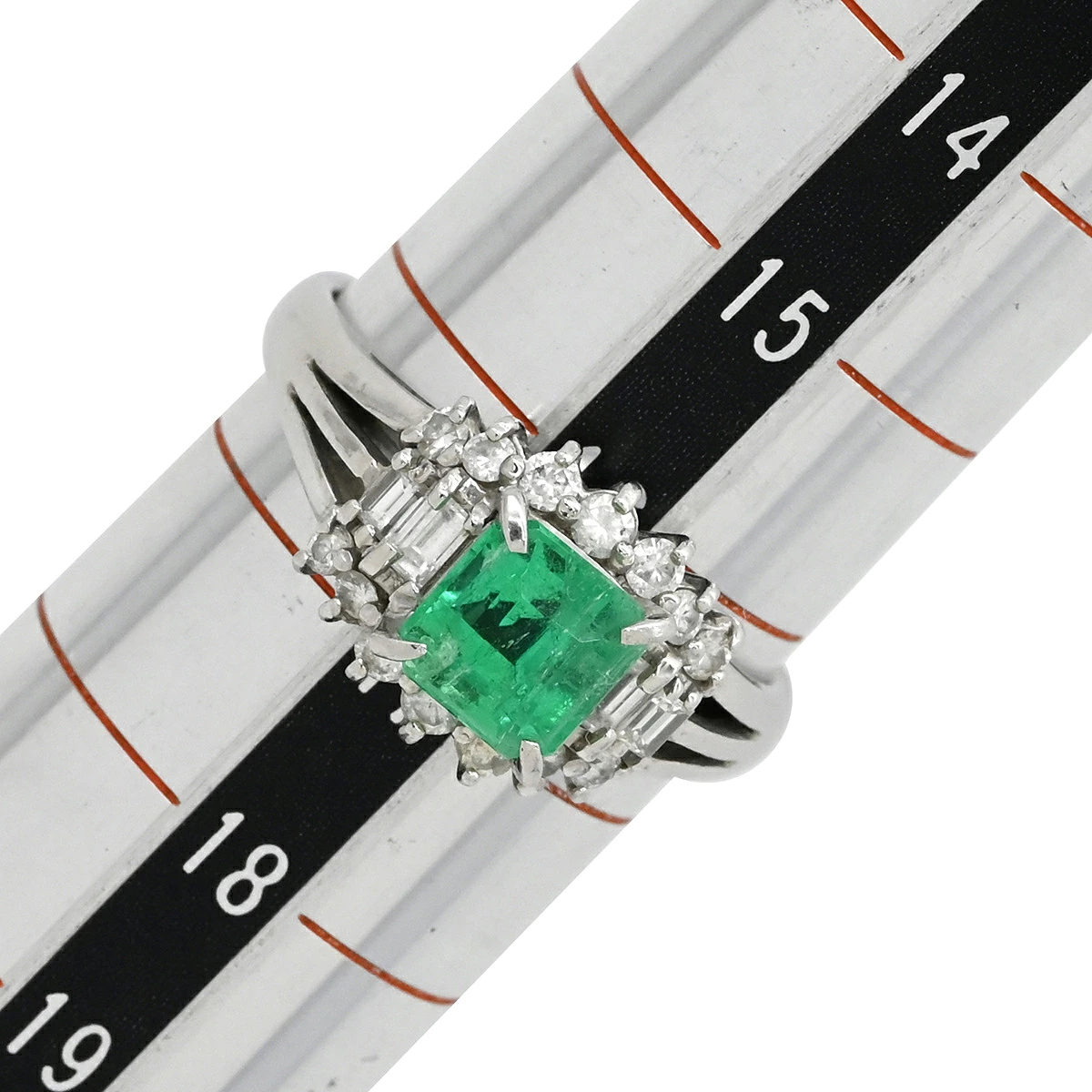 ▲クリックで拡大されますノンブランド NON BRAND リング 指輪 エメラルド ダイヤモンド リング Pt850 エメラルド ダイヤモンド プラチナシルバー グリーン 緑 スクエア - 16.5号 メンズ 【中古】