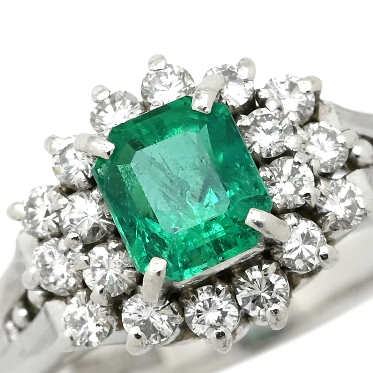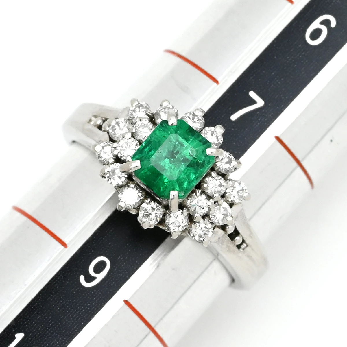 ▲クリックで拡大されますノンブランド NON BRAND リング 指輪 エメラルド ダイヤモンド リング Pt900 エメラルド ダイヤモンド プラチナシルバー グリーン 緑 - 8号 レディース定番 人気 美品 【中古】