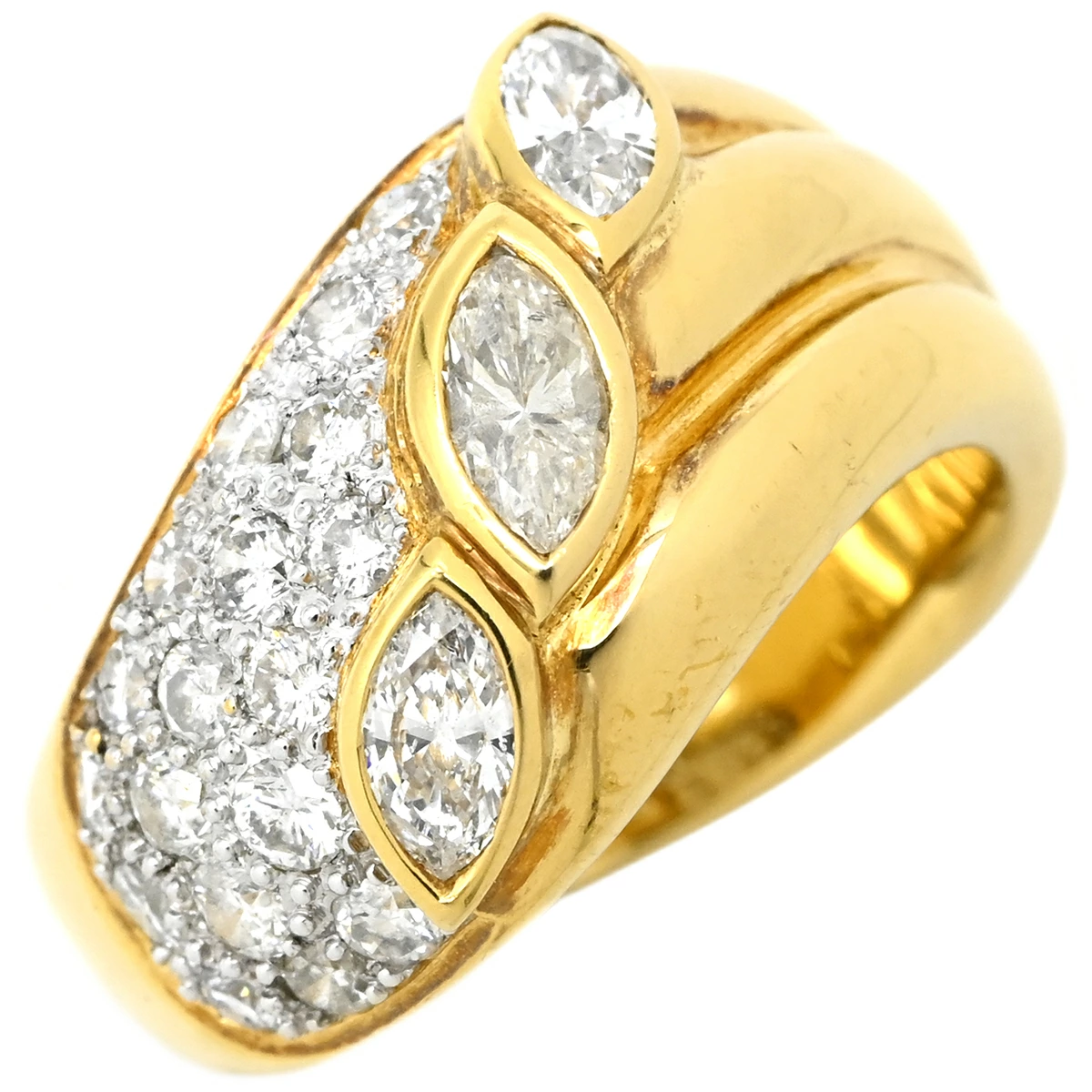 ▲クリックで拡大されますノンブランド NON BRAND リング 指輪 ダイヤリング K18YG ダイヤモンド イエローゴールド マーキスカット ラウンドカット 12号 レディース 【中古】