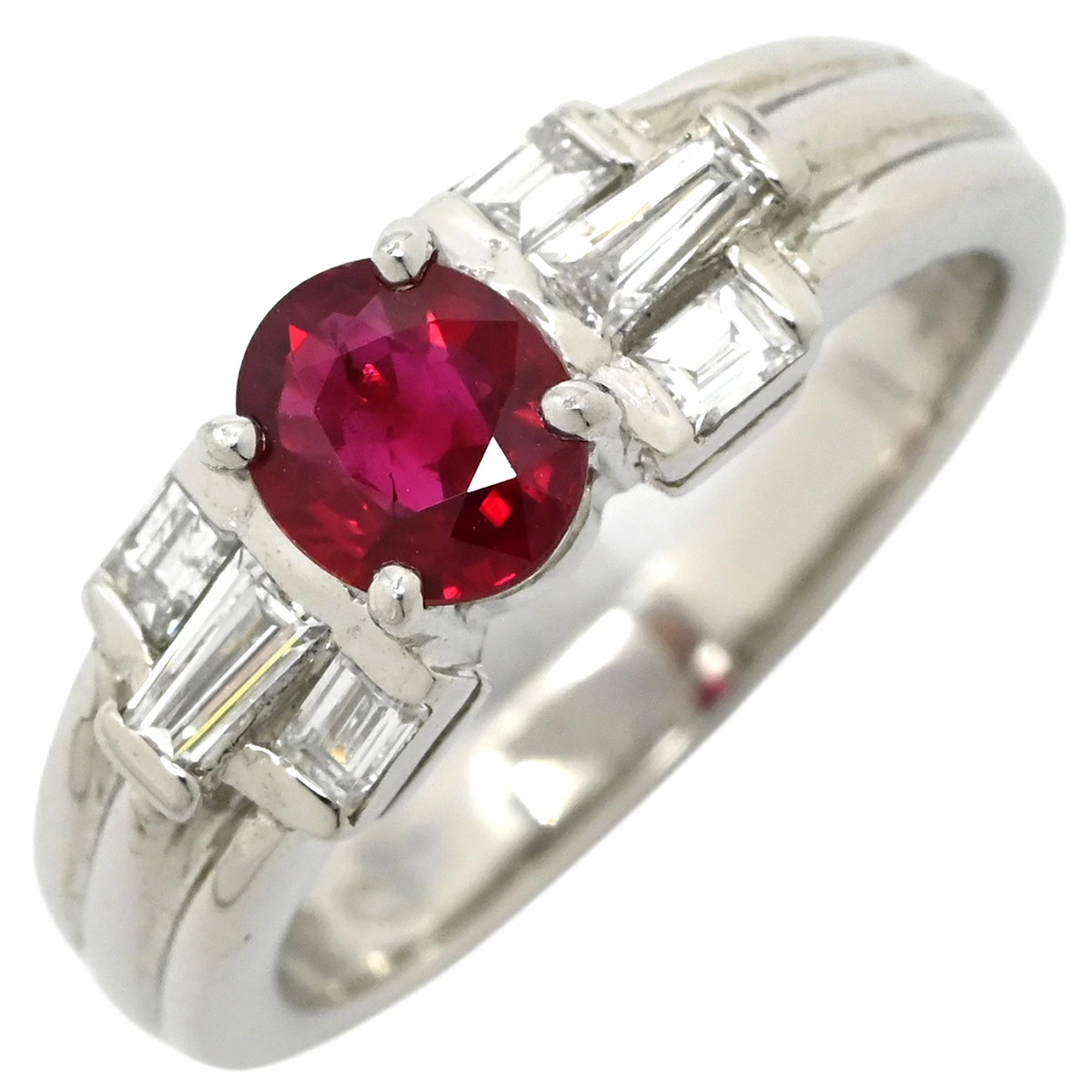 ▲クリックで拡大されますノンブランド NON BRAND リング 指輪 ルビー ダイヤリング Pt900 ルビー ダイヤモンド プラチナシルバー レッド 赤 12.5号 レディース 【中古】