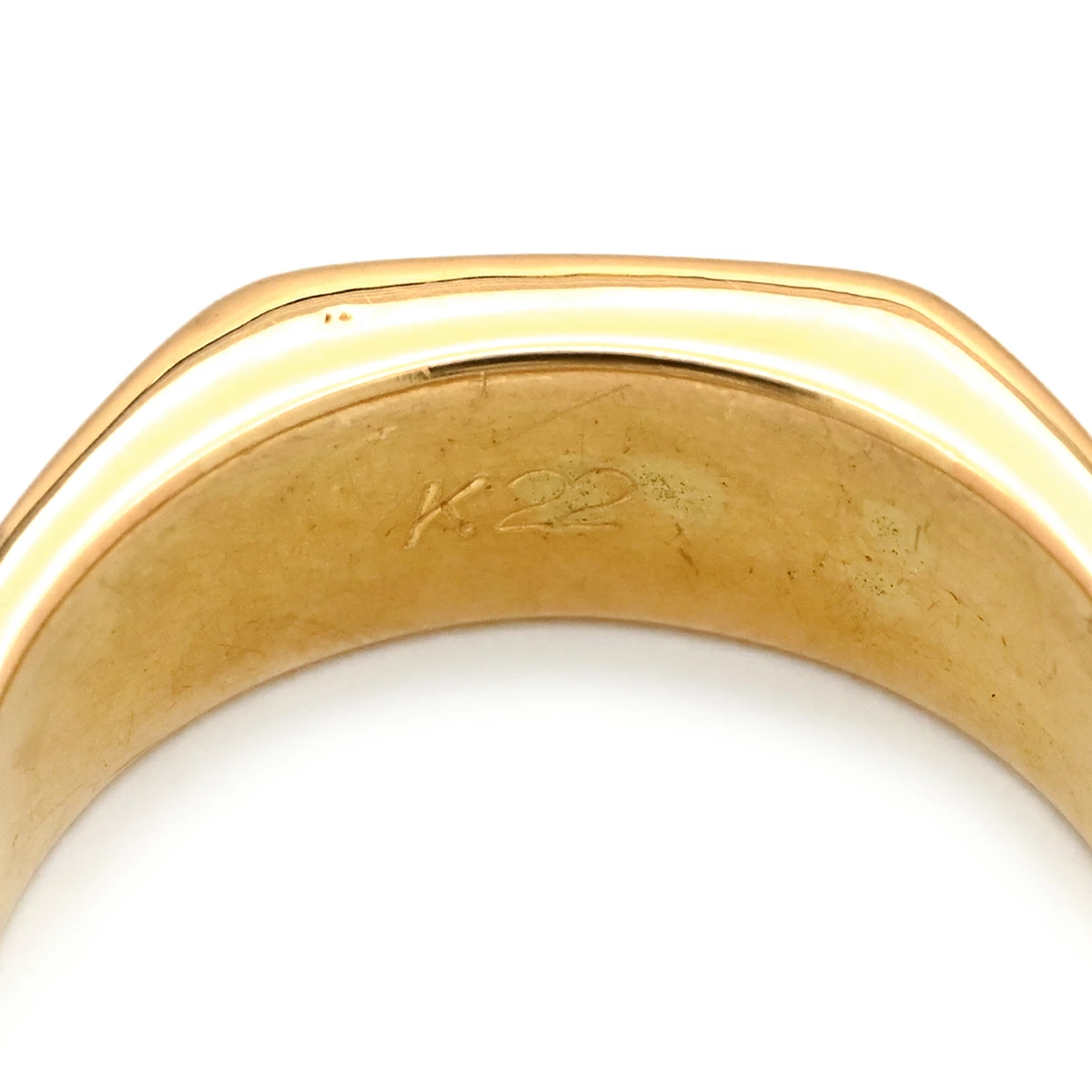 ▲クリックで拡大されますノンブランド NON BRAND リング 指輪 印台リング K22YG イエローゴールド 22金 917 横長角 18号 メンズ定番 人気 美品 【中古】