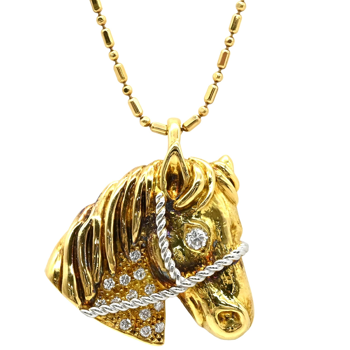 ルーブルーゼ LOUVROUSE ネックレス ホース モチーフ ダイヤモンド K18YG Pt900 ダイヤモンド イエローゴールド×プラチナシルバー 馬 YG Pt コンビ - メンズ レディース ユニセックス定番 人気 美品 【中古】