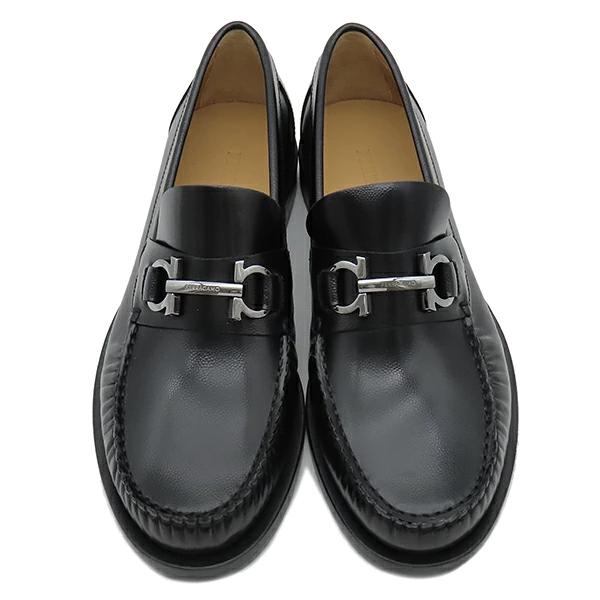 ▲クリックで拡大されますフェラガモ FERRAGAMO ローファー FORT ガンチーニ レザー NERO 黒 靴 シルバー金具 762695 7 メンズ 【箱】定番 人気 美品 【中古】