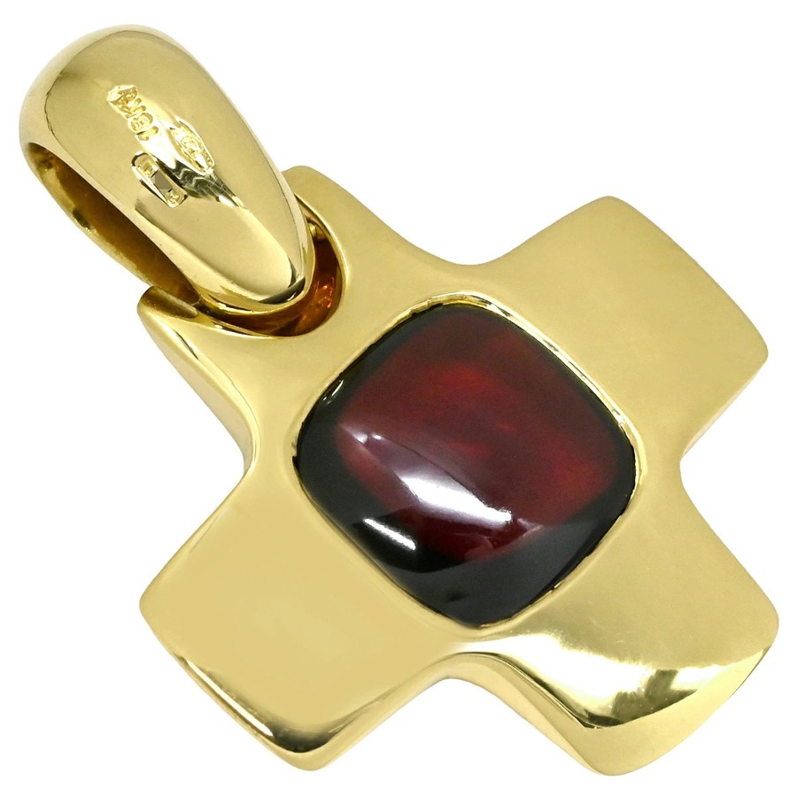 ▲クリックで拡大されますポメラート Pomellato ペンダントトップ クロスモチーフ K18YG ガーネット ワインレッド×イエローゴールド Au750 18K 18金 ミックスカボション 十字架 大粒 ガーネット - レディース定番 人気 美品 【中古】