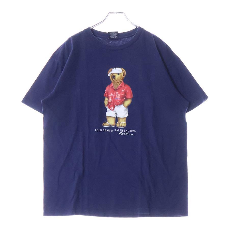 [モデル]90S VINTAGE POLO BEAR ヴィンテージ ホンジュラス製 ポロベア フロントプリント クルーネック 半袖Tシャツ カットソー ネイビー