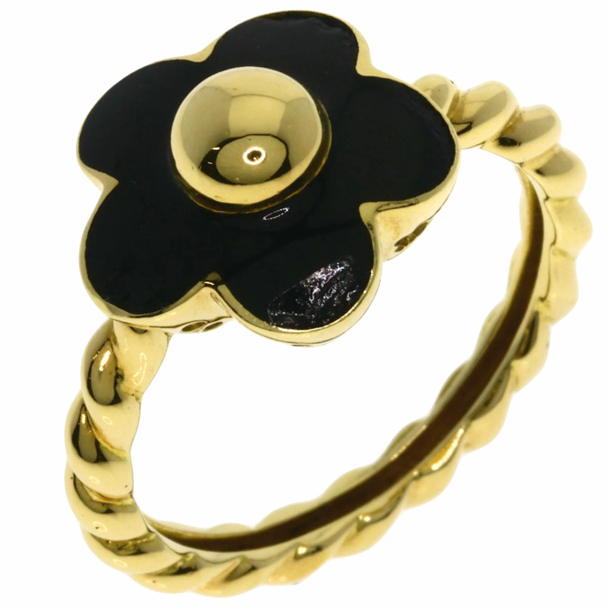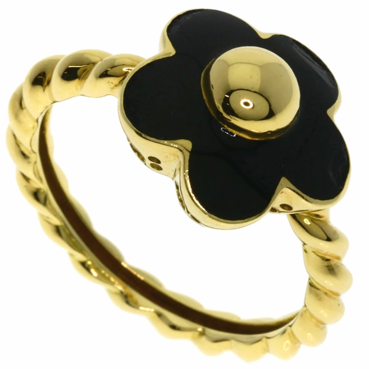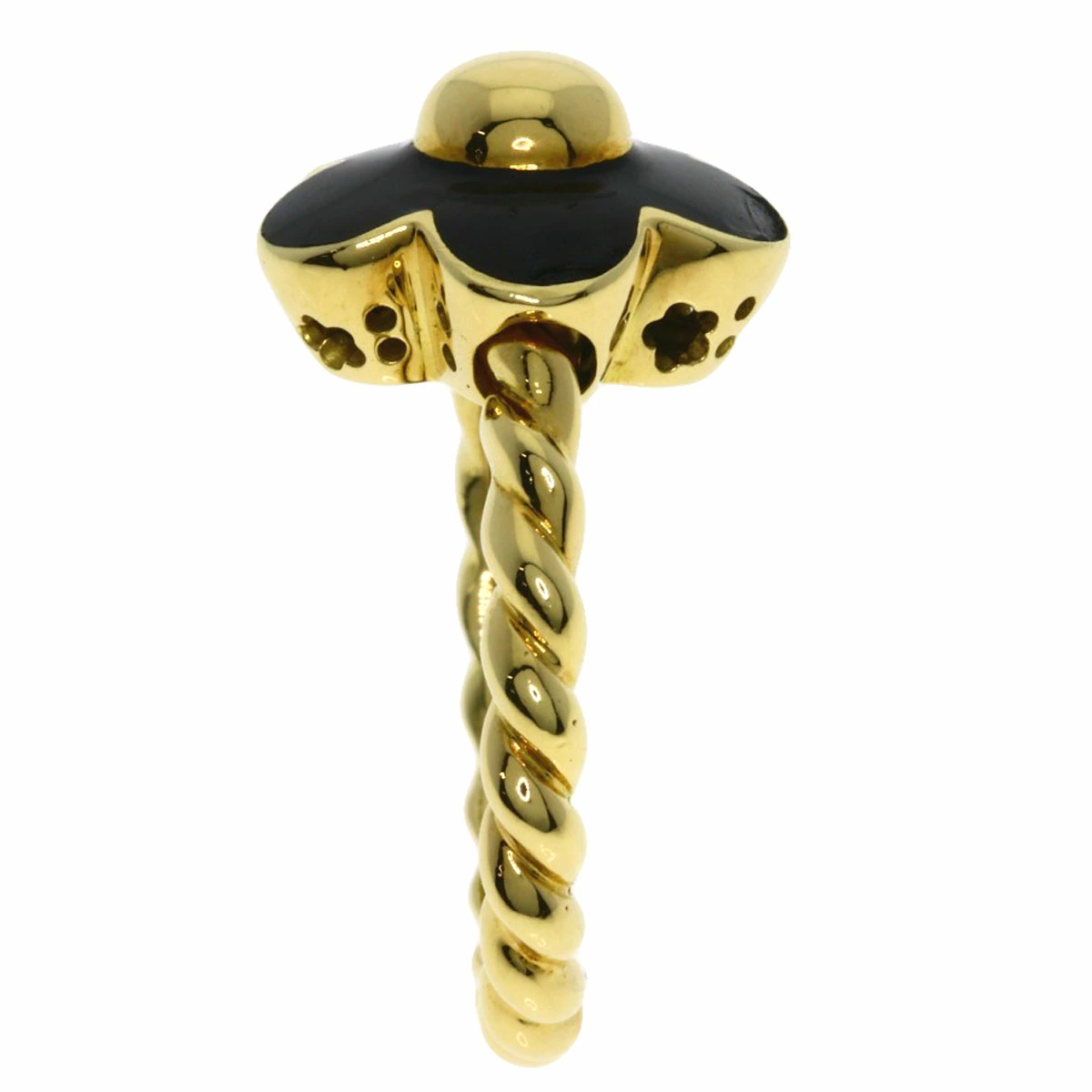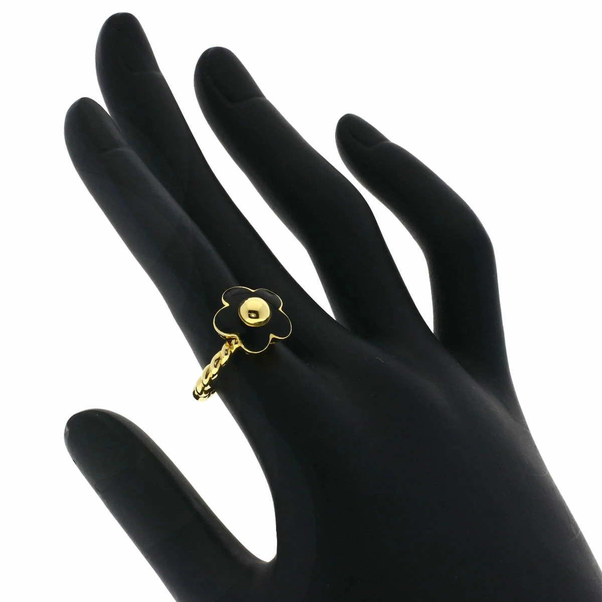 Pre-owned Ponte Vecchio Flower Motif Onyx Ring in 18K Yellow Gold for Women.
